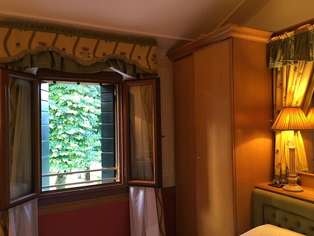 베네치아에서 묵었던 숙소는 이번 여행의 숙소들 중 가장 마음에 들었던 곳이었다. 항상 좋은 호텔에서 묵었었기에 모든 숙소가 다 좋았었는데, 베네치아의 숙소는 더욱 특별했다. 이곳은 굉장히 아담한 호텔이었다. 객실도 20개도 되지 않았고, 멀리서 보면 그냥 좀 큰 저택 같아 보이는 곳이었다. 내부 인테리어도 누군가의 집처럼 보였는데, 나중에 알고 보니 이 곳은 예전에 어떤 귀족의 별장으로 쓰이던 곳이라고 한다. 방 각각은 게스트 침실로 쓰였던 곳이라고. 그래서 각 방마다 인테리어나 크기도 다르다는 이야기를 듣고는 다른 사람들의 방을 구경하기도 했다. 호텔 회사에서 이곳을 인수해서 호텔로 쓰이기 시작했는데, 방이 몇 개 되지 않아서 우리 일행이 이 전체 호텔을 예약한 것 마냥 되어버렸다. 이 호텔도 단체 관광객은 처음 받는 것인지 우리에게 이것저것 챙겨주었다.