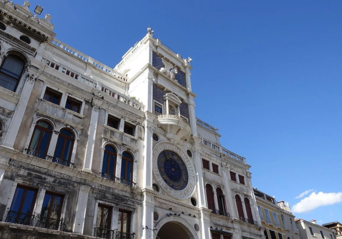 다른 쪽에는 시계탑이 있다. 개인적으로 12 궁도가 그려진 이 시계가 꽤나 마음에 들었다. 시계탑 꼭대기에 있는 청동상이 종을 쳐서 시간을 알리는데, 산 마르코의 종탑에 올라가면 청동상이 종을 치는 것을 볼 수 있다.