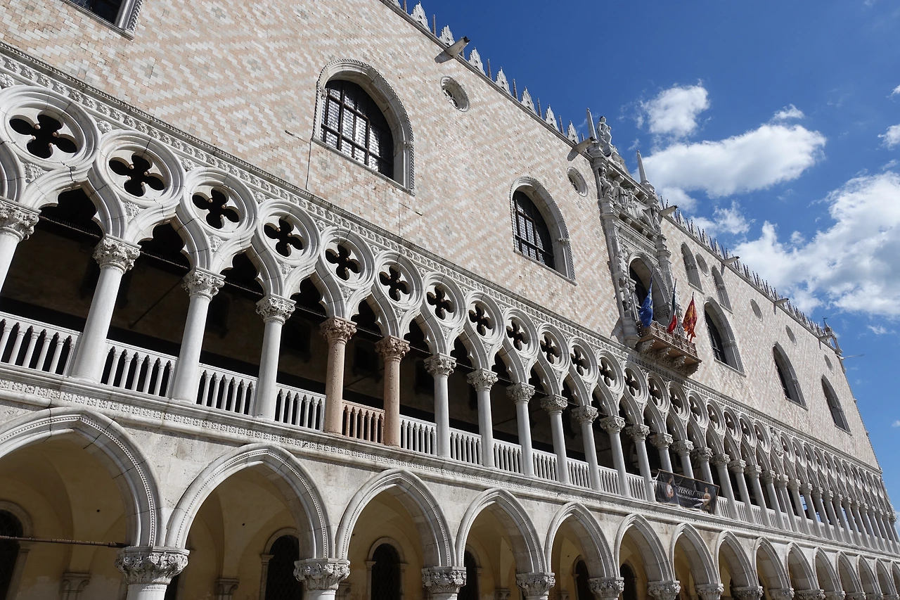 옛날 베네치아의 도제가 사용하던 두칼레 궁전(Palazzo Ducale)도 볼 수 있다. 산 마르코 성당과 붙어 있어 성당의 일부로 보이기도 한다. 현재는 박물관으로 사용되고 있으며 여러 미술작품들과 벽화를 볼 수 있고 광장과 바다를 바라보는 뷰가 좋아 가볼만하다고 한다. 하지만 시간이 충분치 않아 들어가 볼 수는 없었다. 두칼레 궁전의 옆면은 어디서 많이 보던 문양으로 이루어져 있는데, 루이비통의 무늬가 여기서 왔다고 하는 설이 있다.
