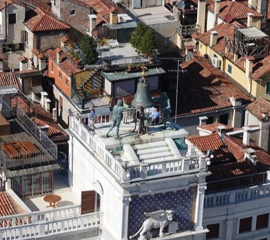 광장에 있던 시계탑 위도 내려다 보여 종을 치고 있는 청동상도 볼 수 있었다. 시간이 되기를 기다려 청동상이 종을 치는 모습도 보았는데, 멀리서 내려다 보여서 그런지 장난감이 움직이는 느낌이었다. 멀리에 바다도 보이고 다른 섬들도 보이는 것이 물의 도시 베네치아에 있음을 느끼게 해 주었다.