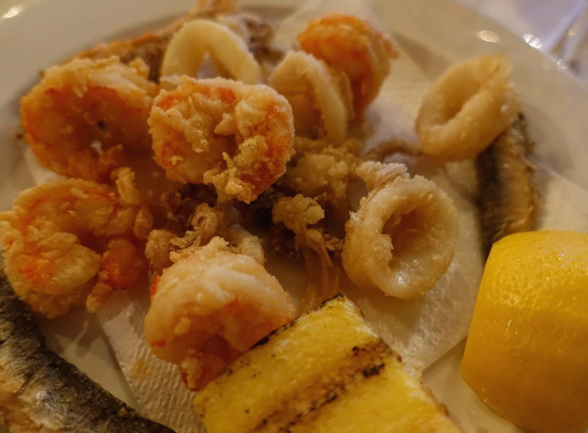 저녁은 단체로 가이드님이 예약한 식당으로 이동하여 먹었는데, 점심에 갔던 곳과 같은 곳이 아닌가. 물론 메뉴는 달라서 상관없었지만 점심, 저녁을 같은 식당에서 먹다니. 여기 정말 맛있는 곳이로구나. 저녁은 먹물 파스타가 메인인 코스였다. 여러 종류의 파스타를 계속 먹다 보니 먹물 파스타는 없나 싶긴 했었는데 여기서 먹게 되다니. 애피타이저로 생선과 오징어, 새우 등 각종 해산물을 튀긴 것이 나왔고, 후식으로는 젤라토가 나왔다. 배가 너무 불러 후식을 먹지 못할 것 같았는데 막상 먹은 젤라토도 굉장히 맛있었다.