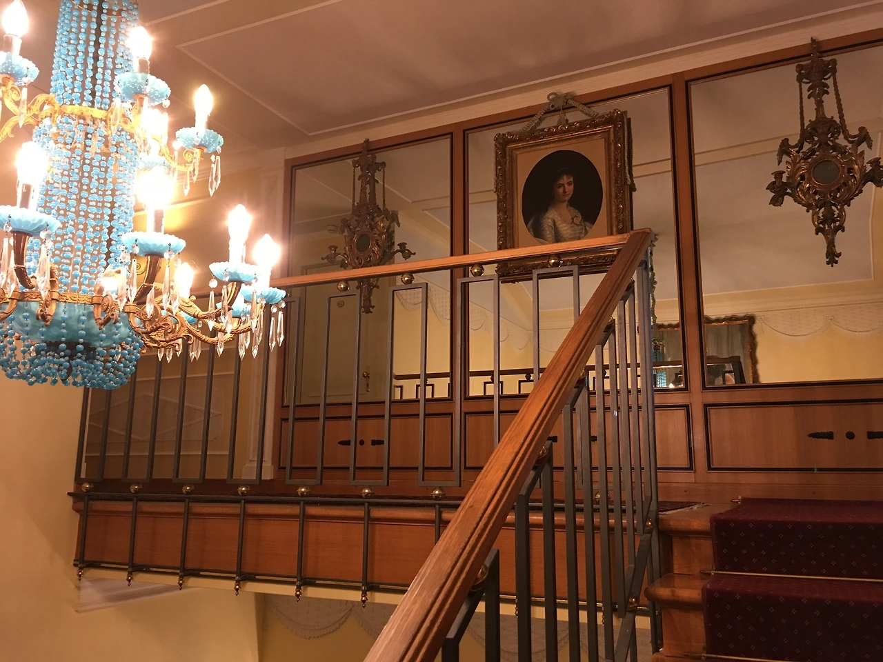 저녁에는 벽화로 가득 그려진 홀에 앉아 사람들과 함께 와인을 마셨다. 홀에는 엔틱 느낌의 의자와 소파가 가득했고 벽 한쪽에는 벽난로도 있었다. 복도에는 어느 귀족의 초상화 같아 보이는 그림들이 여기저기 걸려있었고 계단 위의 샹들리에와 은은한 조명이 고풍스러운 느낌을 더했다. 방 안은 깔끔하고 아늑했다. 아침에는 잔디밭을 산책하며 사진을 찍었다. 정말 인상적인 호텔이었다.