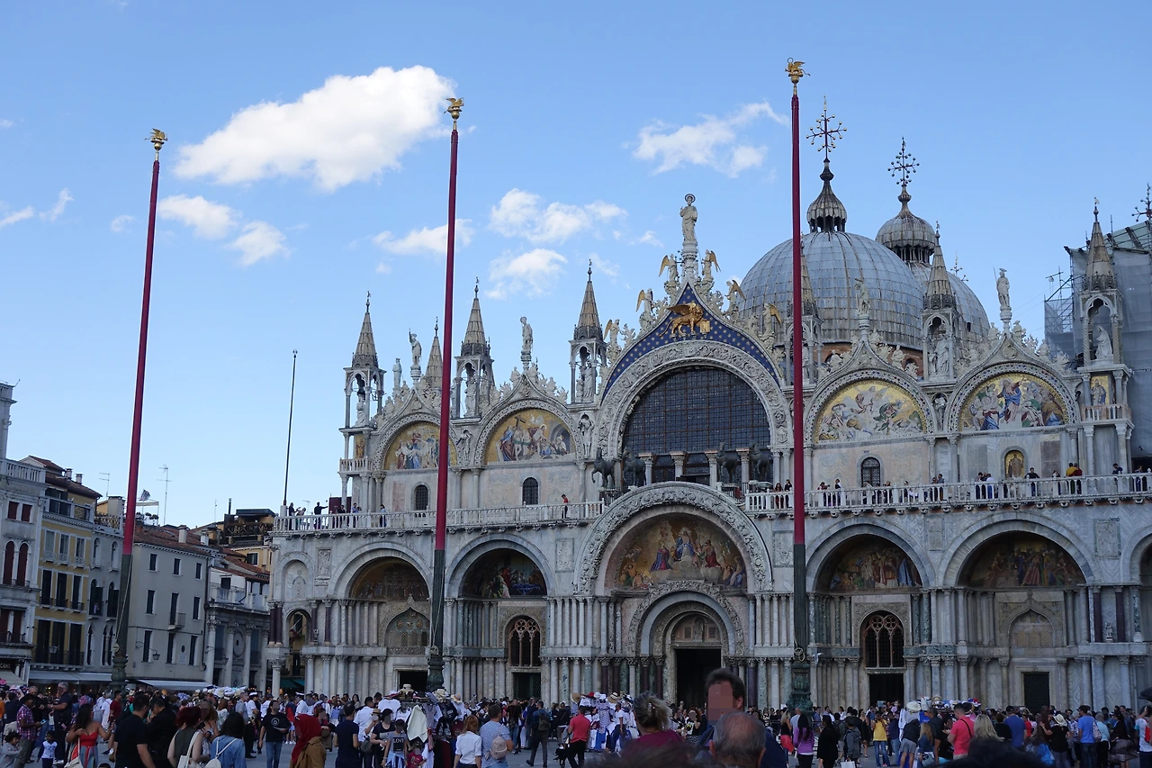 우리가 가장 먼저 향한 곳은 산 마르코 성당이었다. 베네치아에서 가장 유명한 관광지이니 만큼 입장을 원하는 사람들이 줄지어 서있었다. 역시 성수기와 비성수기는 달랐다. 겨울에 왔을 땐 사람이 이렇게 많지 않았었는데... 광장에 있는 많은 인파를 헤치고 성당 내부로 먼저 들어갔다.