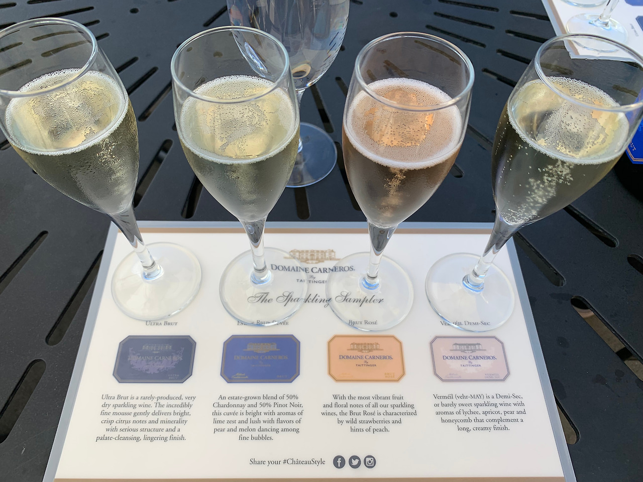 나파의 초입에 위치한 도메인 카르네로스 와이너리는 스파클링 와인으로 유명한 곳이다. 멋있게 생긴 건물과 테라스에서 내려다 보이는 뷰 덕분에 많은 사람들의 사랑을 받고 있으며, 웨딩 촬영도 많이 이루어지는 곳이다. 테라스에서 선선한 바람을 맞으며 캘리포니아의 뜨거운 햇살을 피하기 위한 파라솔 아래 앉아 시원한 스파클링 와인을 마시면 마치 피크닉을 온 것 같은 기분이 든다.