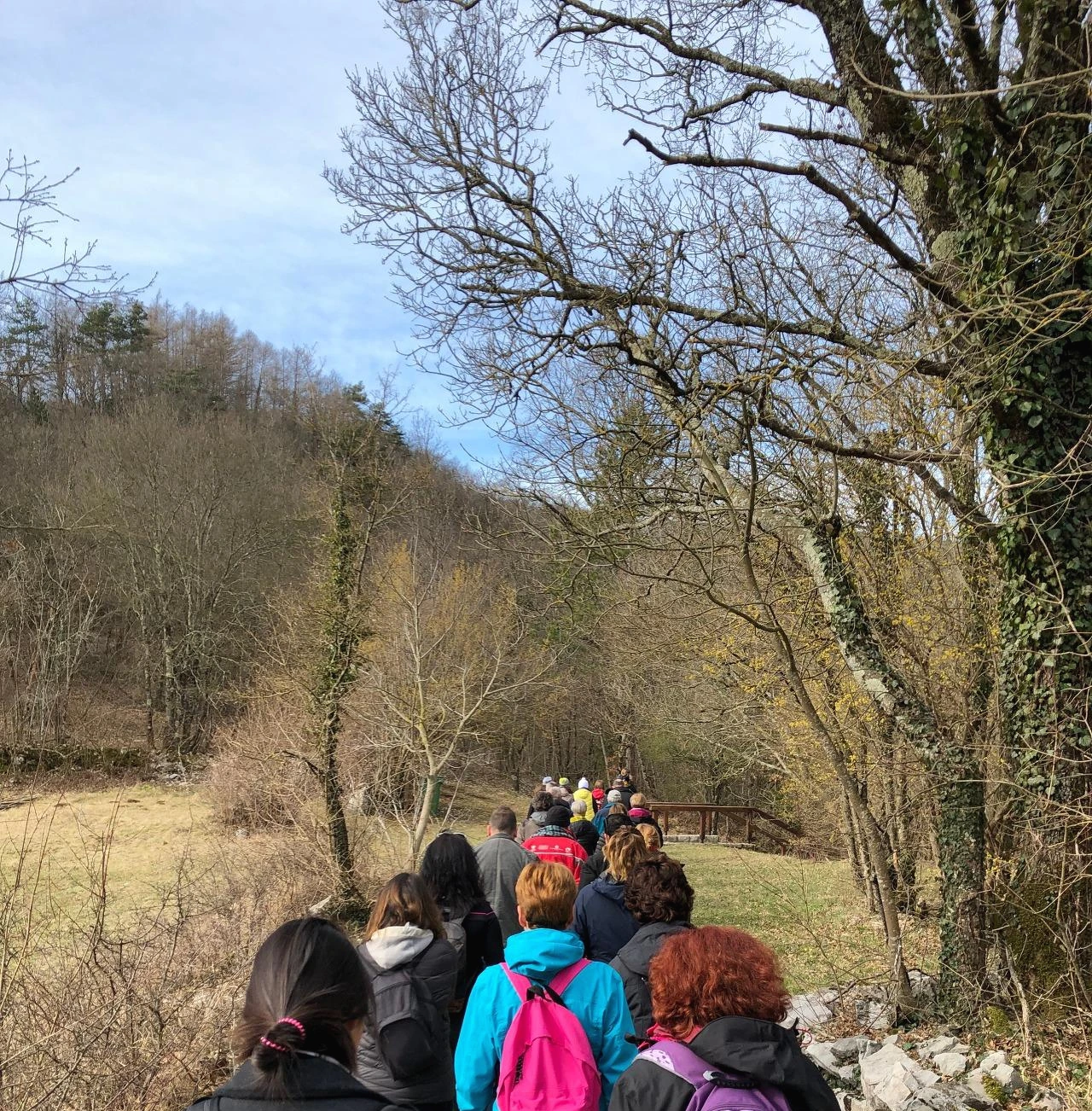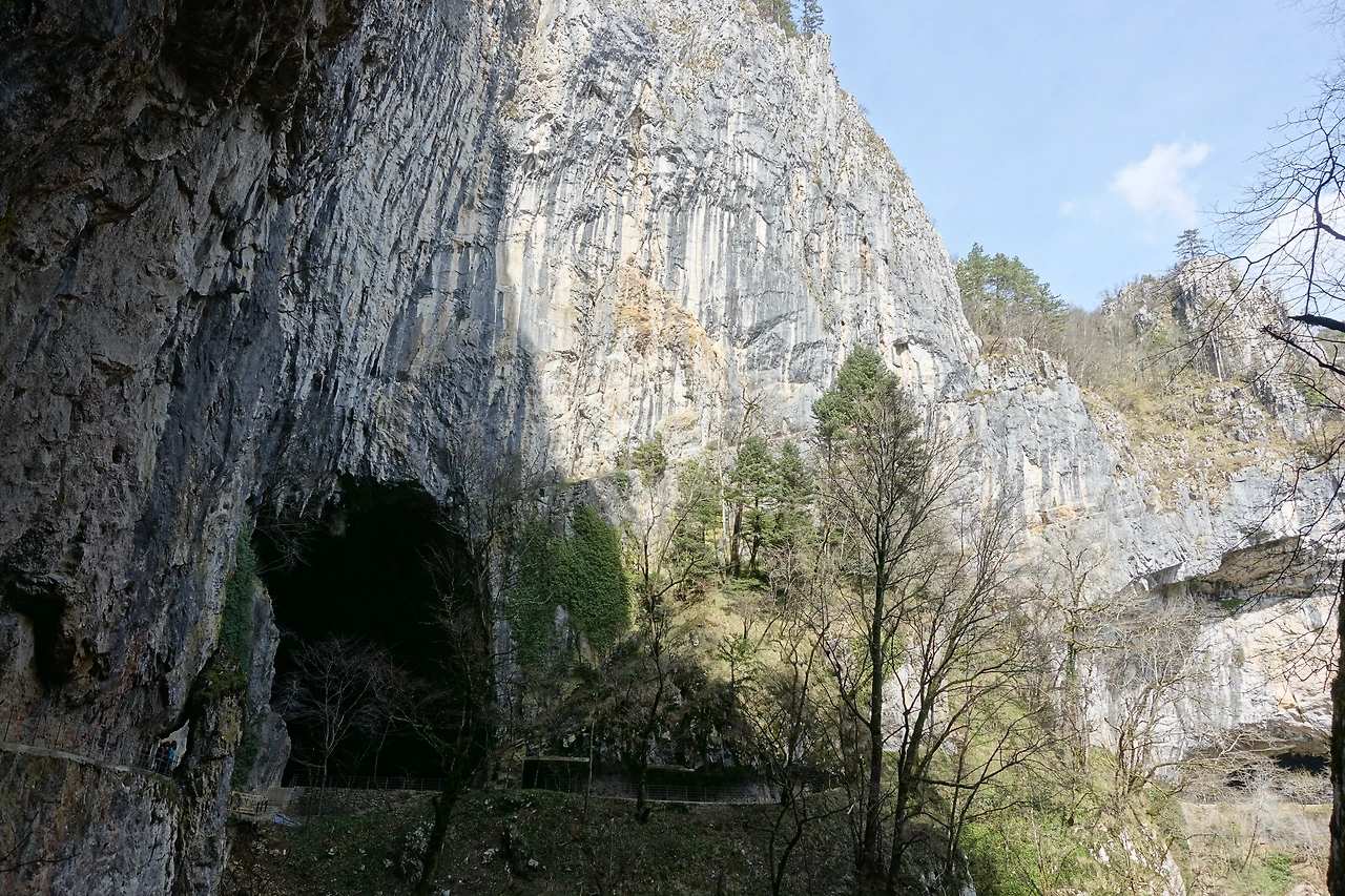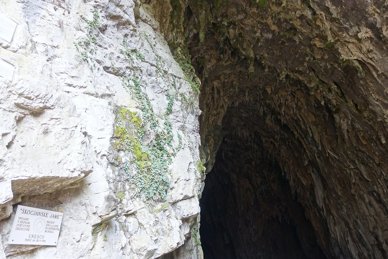 동굴 입구에 도착하니 벌써 사람들이 투어의 시작을 기다리고 있더라고. 우리 빼고는 전부 차를 가지고 왔더라. 걸어온 사람은 우리뿐이었어. 투어 티켓을 사고 기념품 샵을 둘러보며 조금 기다리자 옹기종기 사람들이 모여있는 곳으로 가이드를 해줄 분이 걸어오셨어. 약간 무뚝뚝한 인상으로 슬로베니아어로 한 번, 영어로 한 번 설명을 하더라. 동굴이 시작되는 지점까지는 산길을 따라서 조금 더 안쪽으로 걸어가야 했어. 가이드님의 뒤를 따라 모두가 함께 졸졸졸 걸어가는데 학교 다닐 때 선생님 따라 소풍 가던 느낌이더라.