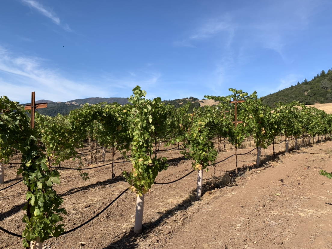 투어를 신청하고 예약한 시간에 맞추어 가면 가이드의 인솔 하에 눈앞의 포도밭부터 투어가 시작된다. 수확철에 와이너리를 간 것은 처음이었는데, 수확철에 가니 여기저기 포도의 잔해가 남아있었다. 올해는 날씨가 따듯해서 그런지 조금 수확이 빨랐던 듯하다. 바닥에도 떨어진 포도가 많았고, 가지에 달린 포도들도 바싹 말라 건포도가 되어 가고 있었다. 하지만 잘 찾아보면 아직 성한 상태로 남아 있는 포도를 볼 수 있었는데, 수확하고 남은 것이니 먹어도 된다고 하여 따 먹어 보았다. 투어를 시작하기 전에 와인을 한잔 받았는데 포도가 좋은 안주가 되었다.