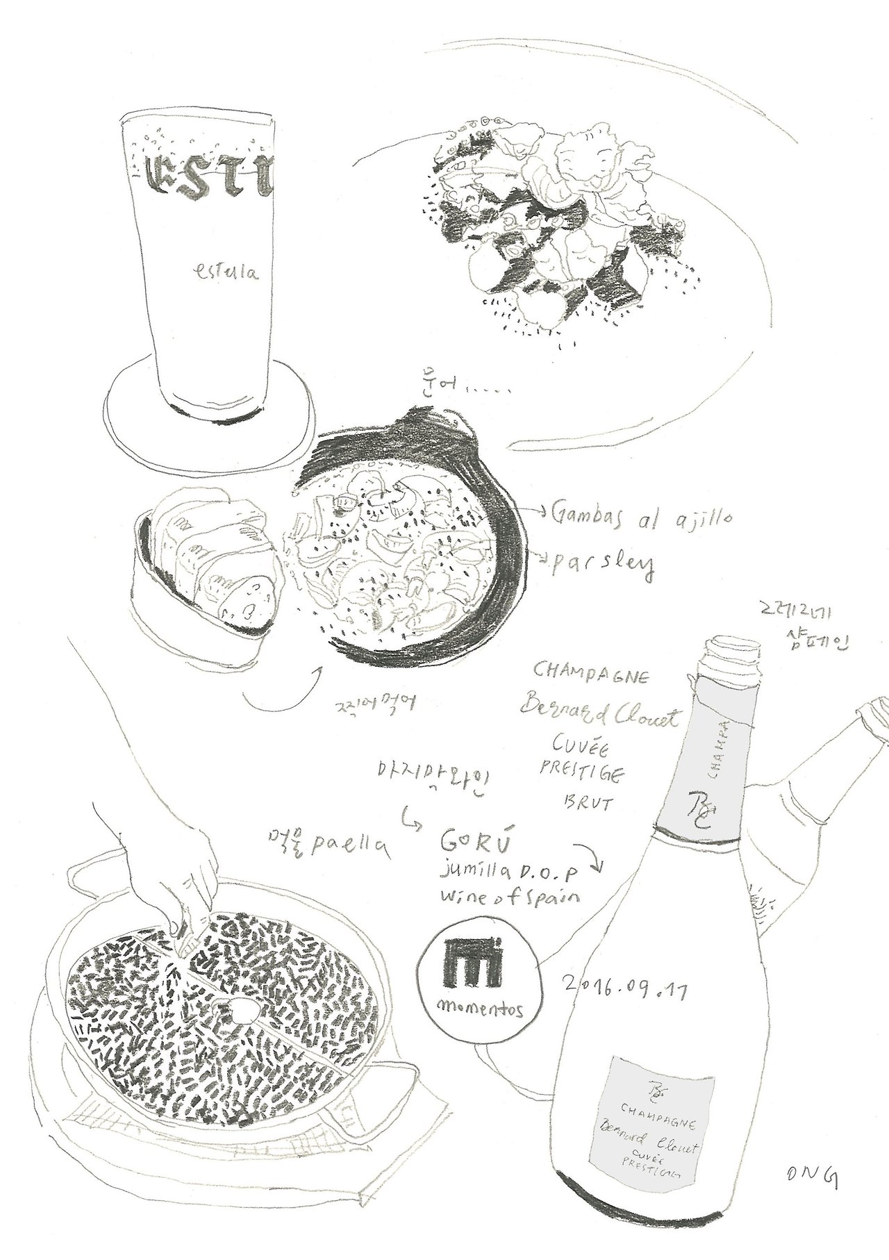하지만 감바스보다 먹물 빠에야가 좀 더 맛있었다는 아쉬운 이야기를 적으면서