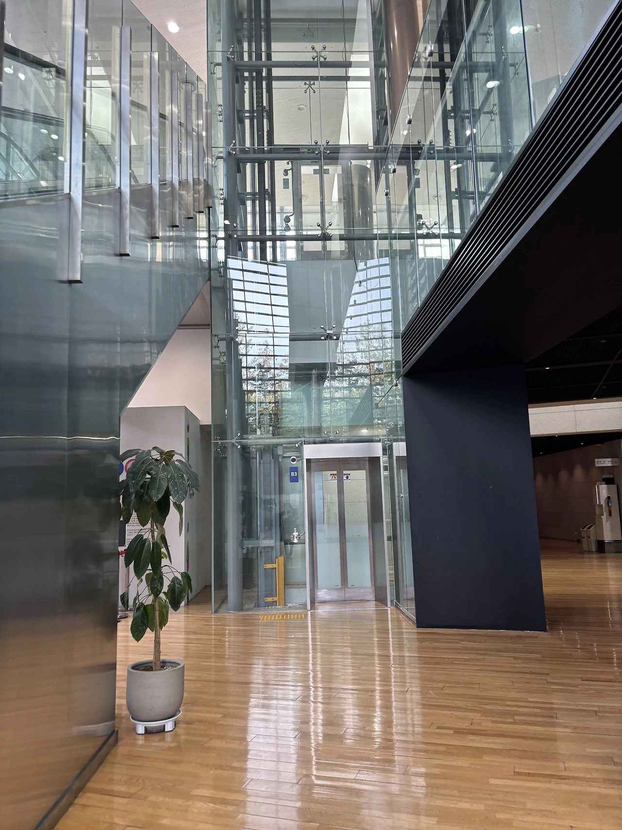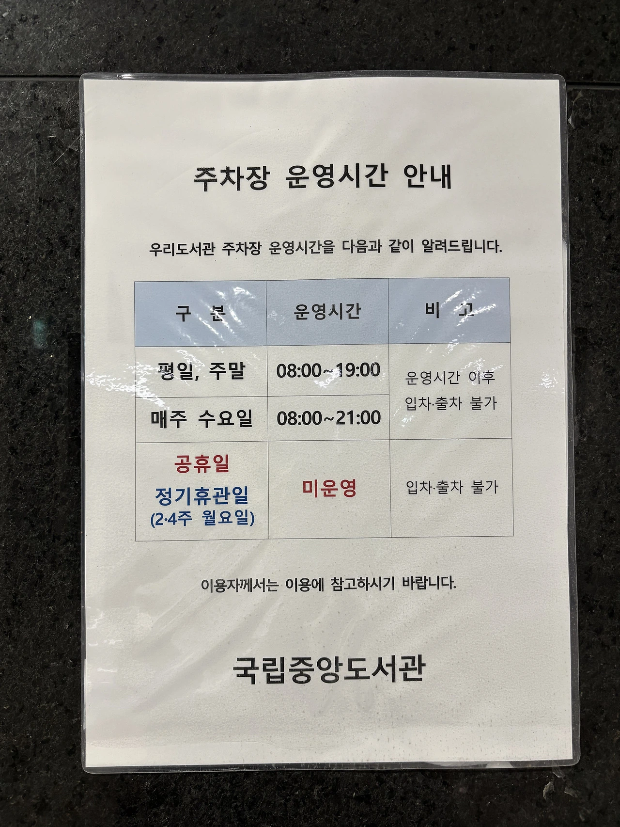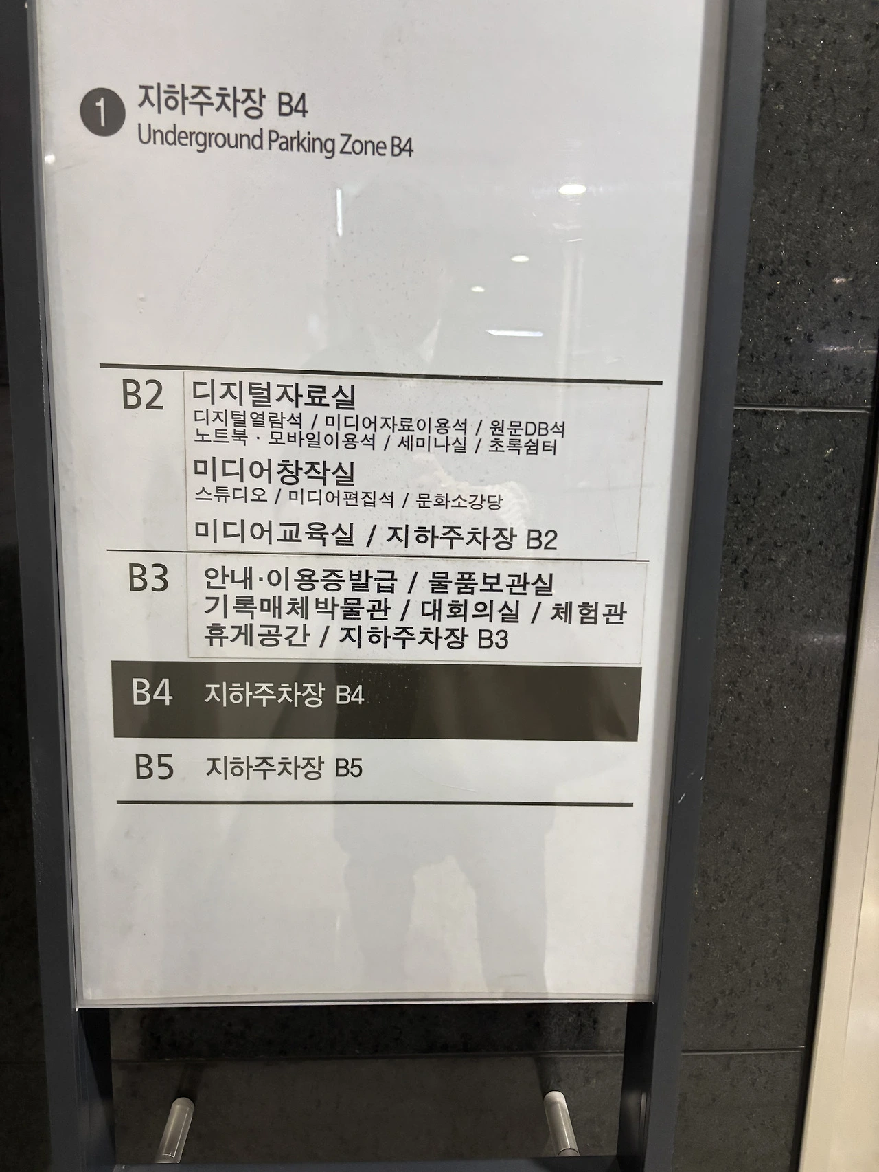 준비물을 모두 챙겨본 뒤, 국립중앙도서관에 직접 방문하기로 했다. 그리 멀지 않아 차를 이용했고, 평일 낮 시간을 활용해서 주차를 할 수 있었다. 지상주차장은 평일 낮에도 꽉 차 있었고, 지하주차장은 조금 동선이 불편했지만 다행히 물어물어 찾을 수 있었다. 지하주차장은 참고로 디지털도서관으로 지하 3층을 통해 연결이 되어 있다. 지하 2층도 외부로 연결이 되는 것 같은데 그쪽 길은 이용해 보지 않아 어떻게 연결이 되는지 확인하진 못했다. 아무튼, 지하 3층 디지털도서관 쪽으로 나와서, 아래 사진에 보이는 투명 엘리베이터를 타고 1층으로 나오면 잔디광장으로 나올 수 있다.