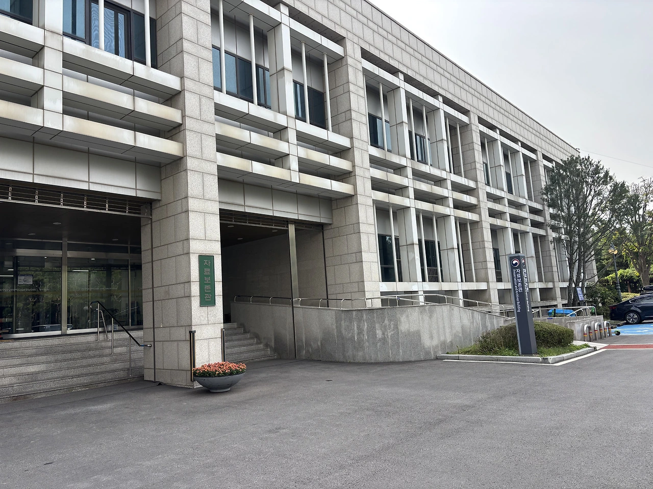 자료보존실이 위치한 아래 사진에 보이는 건물은 보안 장치가 있어 출입증이 있는 사람만 드나들 수 있는 곳이다.