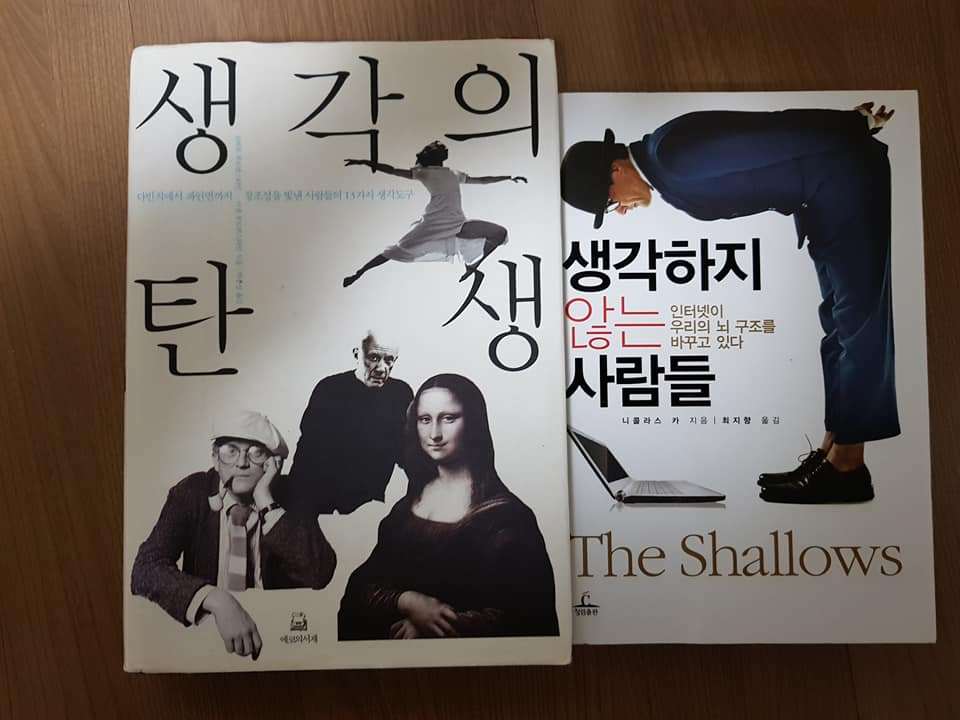 둘 다 정말 최고의 책이다. 생각의 탄생은 정말로 우리가 어떻게 번뜩이는 생각을 하는지 알 수 있는 책이고, 생각하지 않는 사람들은 디지털화가 우리의 사고방식을 어떻게 바꾸고 있는지 알려주는 책이다. 생각의 탄생을 읽고 왜 사람들이 추상화를 보는지 처음 알게 되었다. 또, 추상화, 시, 수학공식이 똑같은 구조라는 사실에 감탄을 금치 못했다. 아이를 키우는 부모라면 생각하지 않는 사람들을 반드시 읽어야 한다. 안 읽으면 나중에 후회할지도 모른다.