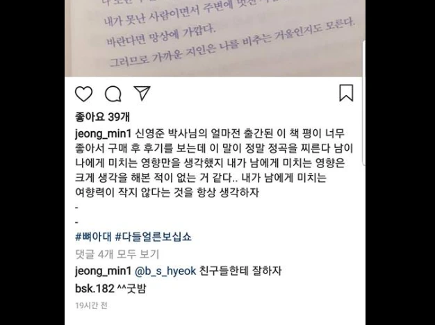 <뼈아대>는 철저하게 데이터 중심으로 쓰여진 책이다. 우리가 SNS를 3년 이상 운영하면서 대중이 듣고 싶어하고 필요로 하는 주제를 엄밀하게 선정하여 에세이 식으로 풀어낸 책이다. <완공>과 <일취월장>은 사실 독서를 잘 하지 않으면 진입장벽이 높은 책인데 상대적으로 <뼈아대> 가볍게 책을 펼칠 수가 있었다. 그렇다고 내용이 절대 가볍지는 않다. 아래 인스타에서 퍼온 후기들을 참고해보면 된다. 그리고 여기서 이번에 우리가 적용한 마케팅 노하우를 하나 공유한다. 우리는 이번 책 구성에 너무너무너무 자신이 있었다. 다시 한 번 말하지만 데이터 중심으로 책 뼈대를 완성했기 때문에 대부분의 사람을 공감할 수 밖에 없었다. 그래서 우리는 과감하게 책 내용이 아닌 책 “목차”에 유료광고를 집행했다. “목차?????” 이 방법을 제시했을 때는 체인지 그라운드 피디들도 고작가님도 다들 갸우뚱했지만 결과는 대성공이었다. 목차를 보고 사람들이 서점으로 나가서 책을 살펴보기 시작했다.