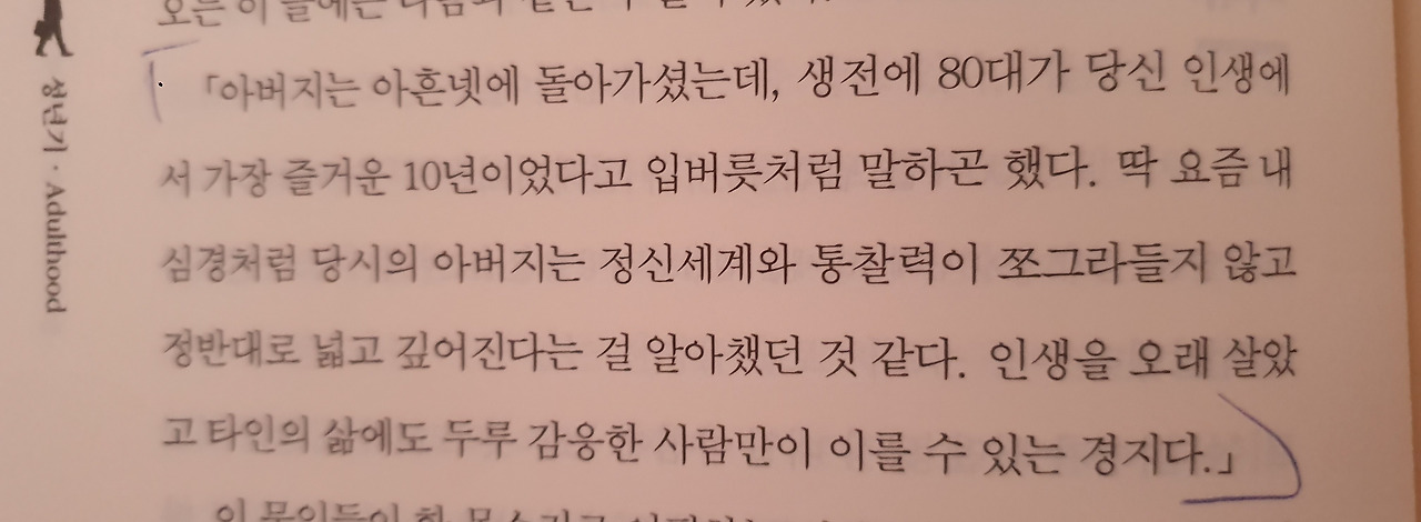 <나이듦에 관하여>는 정말 놀라울 정도로 아름답고 깊은 책이다. 나는 이 책을 지금 읽은 것을 행운이라고 생각한다. 그리고 개인적으로 다른 분들도 이 책을 읽는 그 순간이 행운을 잡는 순간이라고 확신한다. 여러분 인생의 20년을 행복하게 살수 있도록 도와줄 수 있는 행운이 여러분 앞에 있다. 잡을 것인지는 여러분의 몫이다. 진심으로 여러분도 그런 행운을 잡아서 더 행복해지기를 진심으로 기원한다.
