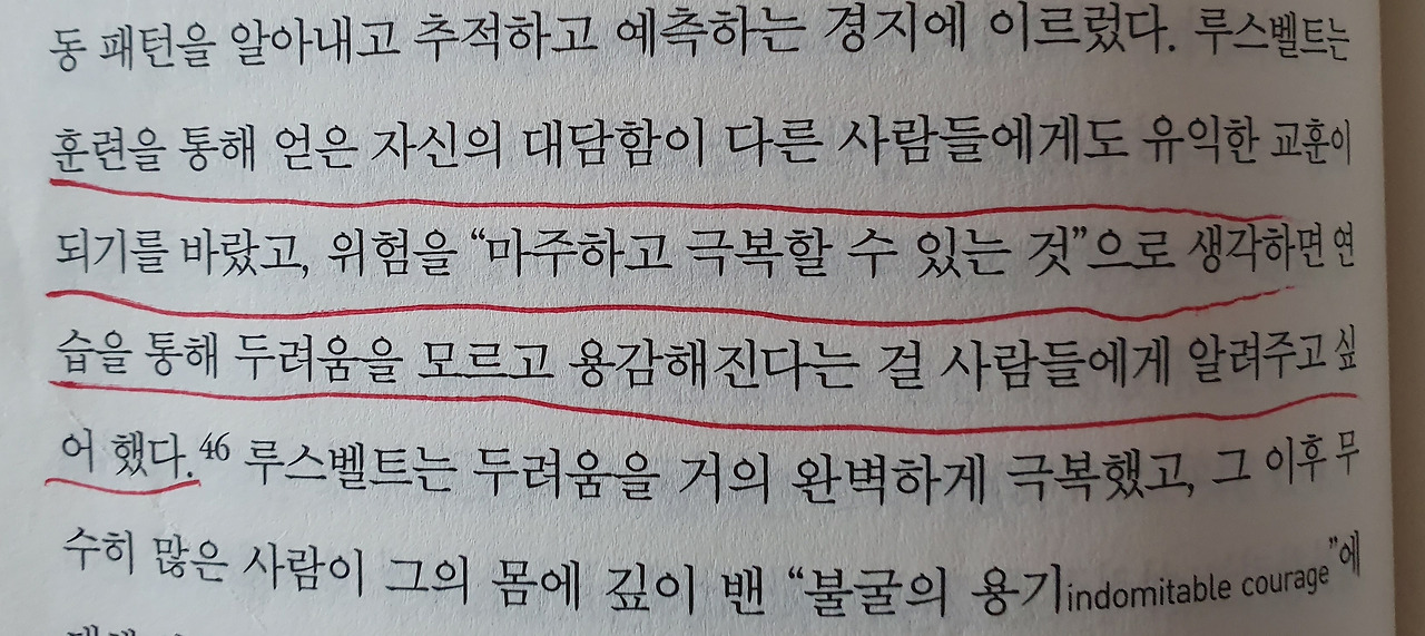 시어도어 루즈벨트 대통령 통한 엄청난 고난의 시기를 겪었다. 그러면서 그 고난의 시기를 자기성찰과 개발의 시기를 바꿨고 그 또한 미국 역사에 한 획을 긋는 대통령이 된다.