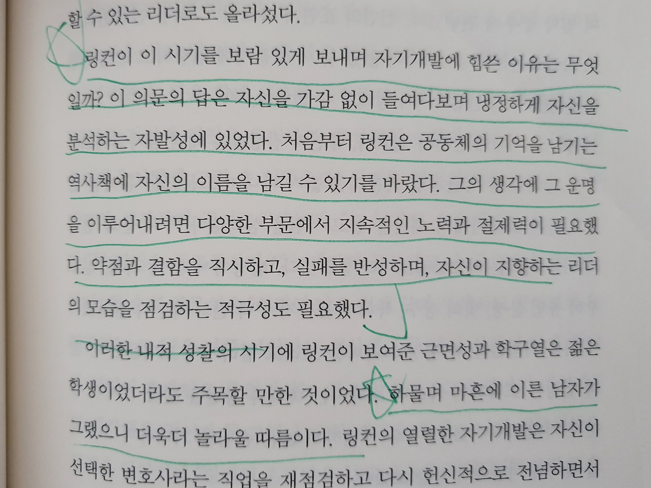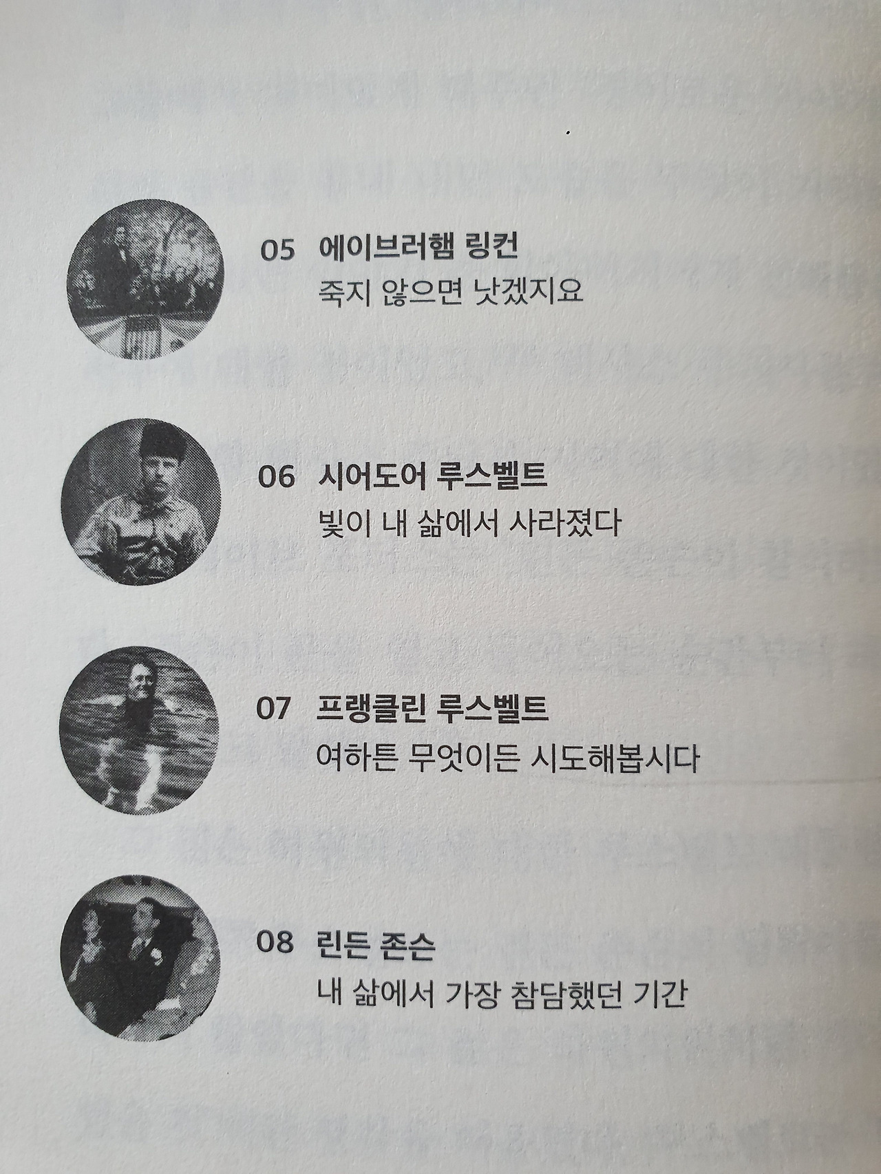정말 나는 <혼돈의 시대 리더의 탄생>을 읽고 많은 것은 깨우치고 느꼈다. 그리고 어디서 쉽게 배울 수 없는 세계 패권 국가의 최고 리더들의 삶을 들여다보면서 어떻게 앞으로 어떻게 계획을 세우고 실천을 해야 하는지 크나큰 가르침을 얻었다. 특히 이 책 2장은 <역경과 성장>은 통째로 다 외우고 싶을 정도이다. 내가 왜 이 글의 제목을 ‘40대에게 진심으로 추천하는 책’이라고 했는가 하면 링컨의 이야기를 보고 모두가 배우고 힘을 얻기를 간절히 바라기 때문이다.
