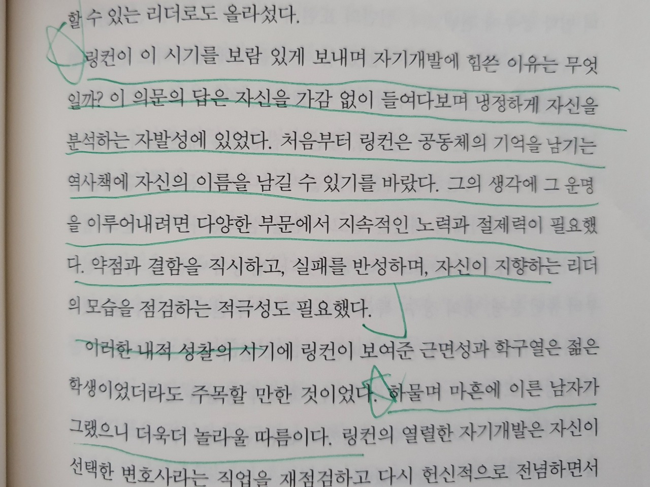 정말 진심으로 강력하게 권한다. <혼돈의 시대 리더의 탄생>은 깊은 울림과 통찰을 여러분에게 줄 것이다. 정말 읽지 않은 사람이 손해일 정도로 훌륭한 책이다. 아래 마지막으로 인용한 대목을 보면 전세계 역사상 최고의 대통령 중에 한 명인 링컨은 인생에서 최고의 위기 순간에도 자기계발을 게을리하지 않았고 결국 그 노력은 링컨이 대통령이 되었을 때 엄청난 힘이 되어준다. 진심으로 혼돈의 시대에 생존력을 키우고 싶다면 월가 최고의 현자 워렌 버핏이 강력하게 추천한 <혼돈의 시대 리더의 탄생>을 꼭 읽어 보기를 바란다. 모두 파이팅!