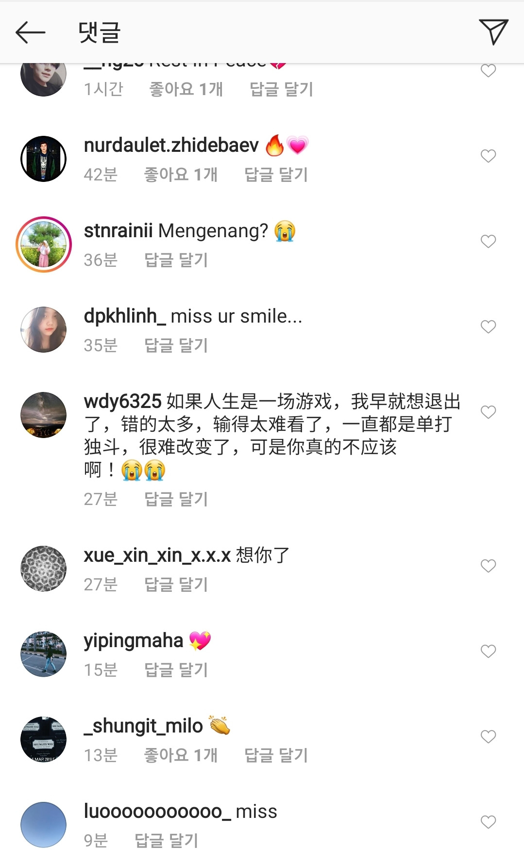 예전에는 사람이 죽으면 특정 장소에서 추모를 했지만 이제는 온라인에서 추모를 더 많이 한다. 아래는 안타깝게 꽃다운 나이에 운명을 달리한 설리양의 인스타 계정 마지막 게시물의 댓글창인데 아직도 분단위로 사람들이 댓글을 남기고 있다. 이 사실을 확인하기 위해 인스타 계정에 들어갔을 때 기분은 너무 이상했다. 너무 슬프게 세상을 떠난 유명인들의 계정은 거의 다 비슷한 상황이다. 하지만 사진과 영상이 너무 생생해서 이 분들이 마치 어딘가 살아있을 것 같은 생각이 들었다.