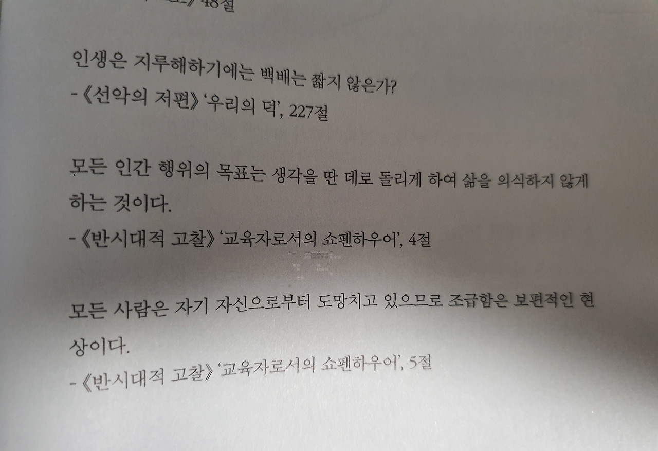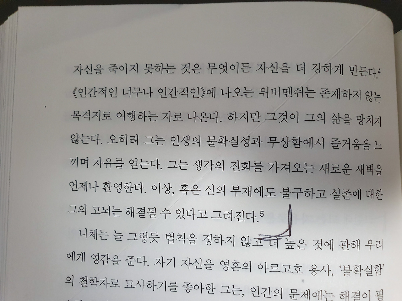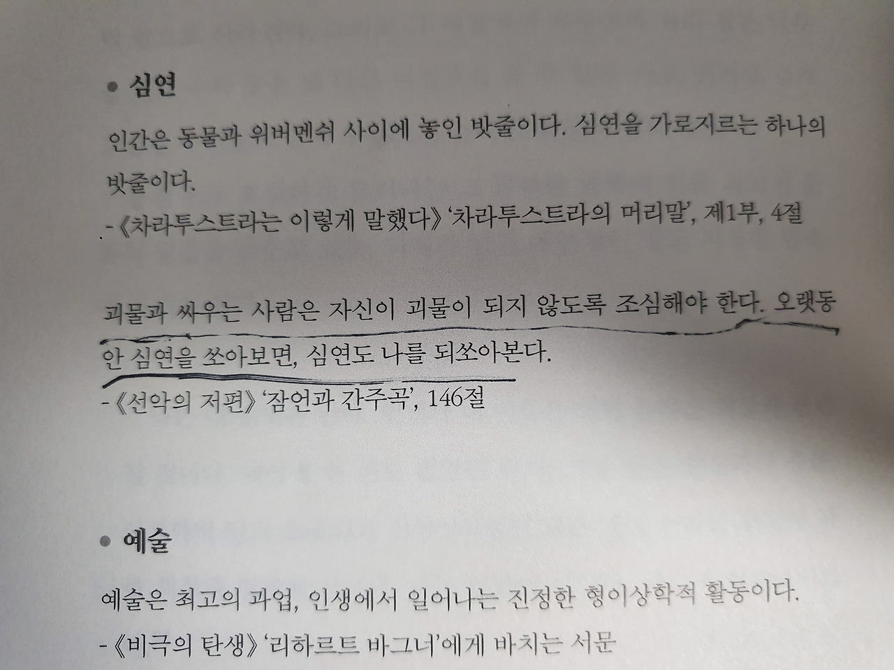아래는 책 말미에 나오는 니체의 아포리즘 중에 일부이다. 정말 촌철살인의 글들이 정신을 번쩍들게 한다.