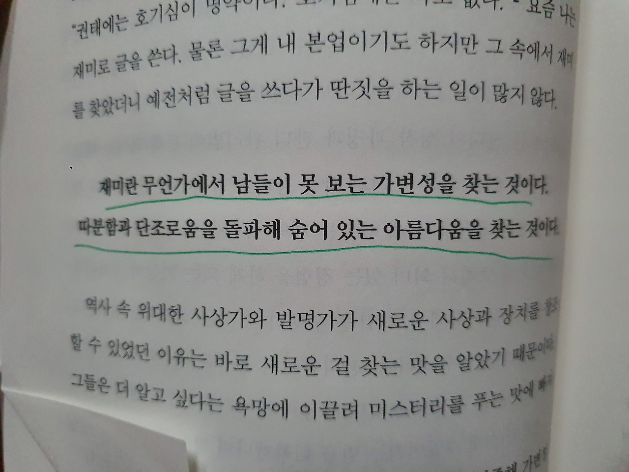 <초집중>에서는 정말 구체적인 각론이 많이 나온다. 당장 바로 실천할 수 있는 것들이 많아서 개인적으로 읽자마자 바로 실천한 부분들이 많다. 개인마다 그 실천을 통해 얻는 차이는 존재하겠지만, 읽고 실천한 사람들은 집중력이 올라가고 생산성이 향상되는 경험을 할 것이다. 예를 들면 우리가 지루한 상황에서 재미를 찾아 집중할 수 있는 방법에 대해서도 설명한 부분이 있다. 역시 앞에서 말한 것처럼 시스템 설계자 전문가답게 “가변성”을 통한 보상으로 우리가 어떻게 집중력을 올릴 수 있는지 이야기를 풀어나갈 때는 저절로 무릎을 탁 치게 되었다.