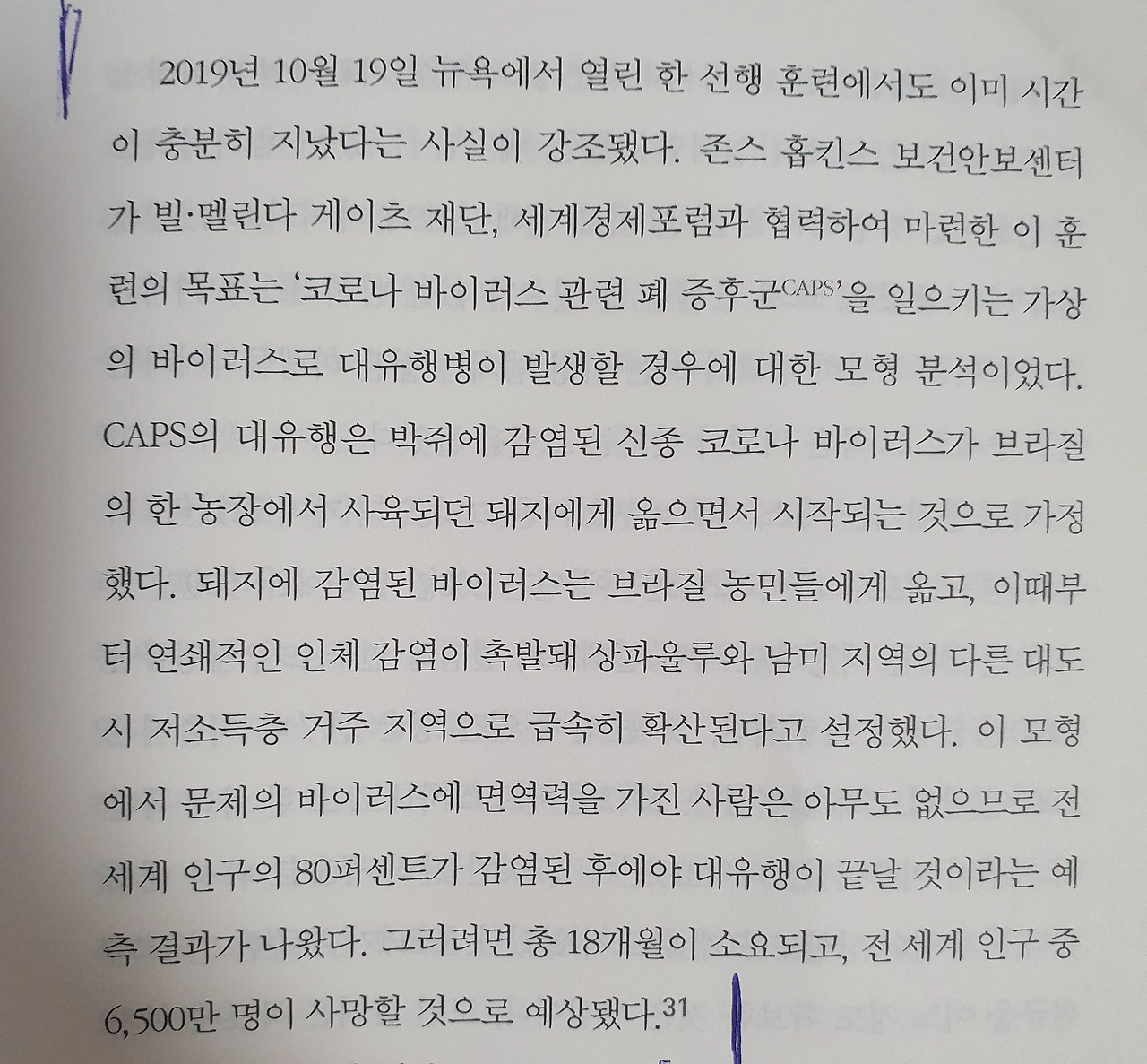 우선 복잡계에 관한 책을 읽으면 많은 인생 전반에 크게 도움이 되는 통찰력을 얻을 수 있다. 바이러스 창궐은 전형적인 복잡계 현상이다. 서문을 보면 <대유행병의 시대>도 바이러스라는 주인공을 통해서 복잡계의 서사를 풀어갈 것이라고 말하고 있다. 이런 책은 무조건 읽는 게 답이다.