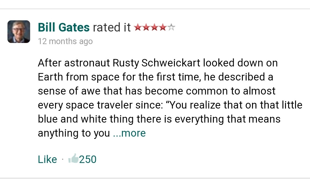 이 책은 엄청난 책이다. 일단 개인적으로 이 책을 읽었을 때 정말 최고의 지적 쾌감을 느낄 수 있었다. 500쪽이 넘는 책을 정말 몰입해서 읽었고 이 책을 제대로 읽었다면 마지막 2장에는 엄청난 철학과 통찰의 정수를 맛 볼 수 있다. 그리고 나만 그렇게 생각하는 것이 아니라 세계에서 제일 큰 책 리뷰 커뮤니티인 Goodreads에서 이 책은 무려 5점 만점에 4.2점을 넘는 평점을 받았다. 여기서 3.5점만 넘어도 좋은 책이 많은데 4점 넘는 책은 그냥 믿고 읽어도 된다. 이 커뮤니티가 어떤 곳이냐면 아래 첨부한 것처럼 빌 게이츠도 직접 리뷰를 남기는 후덜덜한 곳이다.