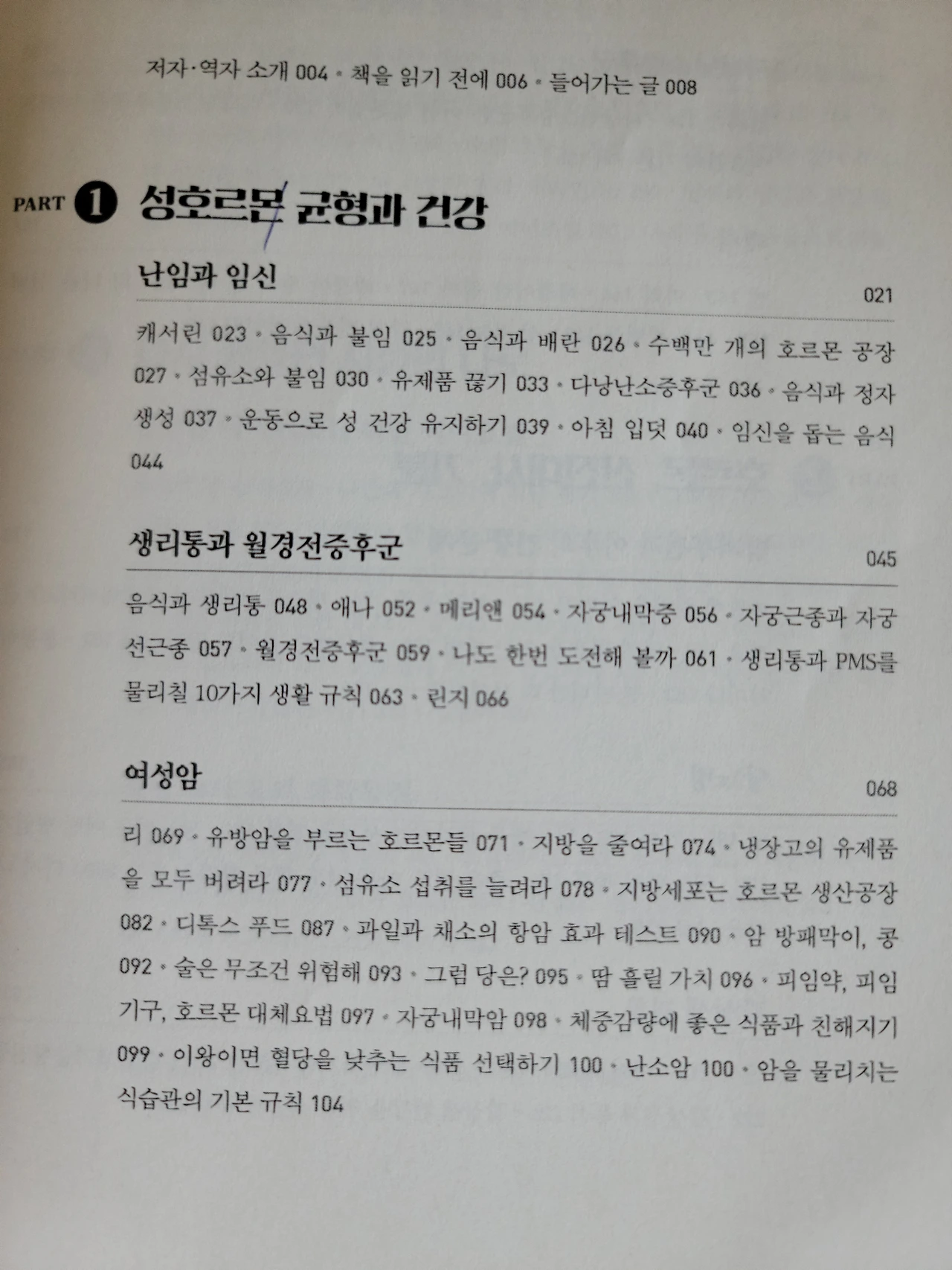 이번에 읽은 <건강 불균형 바로잡기>는 호르몬과 음식의 관점에서 우리의 건강을 어떻게 지킬지 말해주고 있다. 특히 이 책은 모든 여성분들은 꼭 다 읽어봤으면 좋겠다. 아래 목차를 보면 바로 알 수 있듯이 여성건강에 관한 이야기가 정말 많이 나온다. 나는 이 책을 읽고 일주일 동안 책 관련 얘기를 아내에게 계속했다. 병원 치료나 약으로도 쉽게 고치지 않는 질환들을 상황이 식단 조절을 통해 훨씬 나아질 수 있기 방향을 책에서 매우 구체적으로 얘기 해주기 때문이다. 저자는 조지워싱턴 의과대학 닐 바드너 교수이다. 바드너 박사는 세계적으로 인정받는 식이요법의 권위자이다.