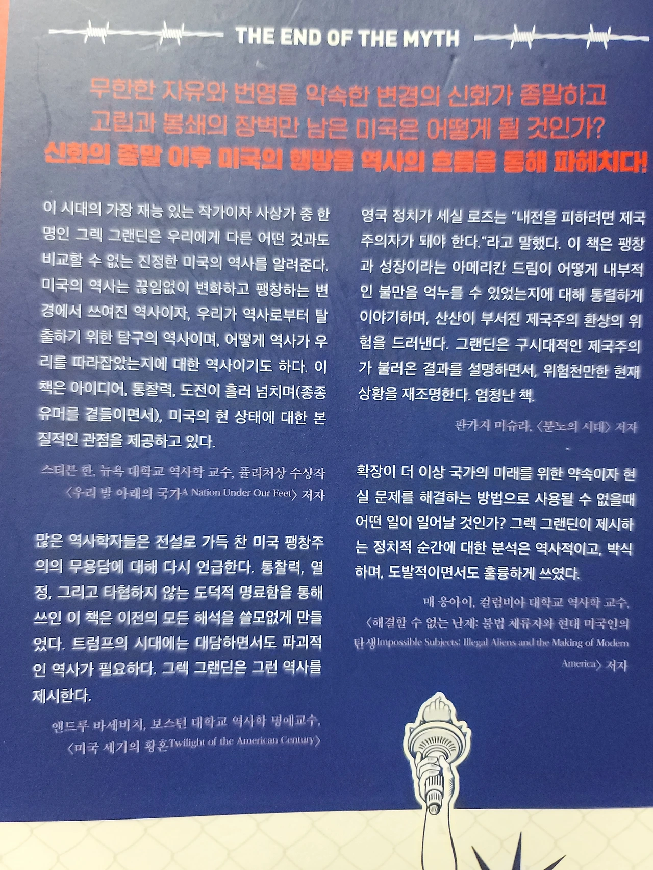 이 책을 읽으면 미국이 자신들의 끊임없는 팽창을 위해 어떻게 멕시코에 개입을 했는지 그리고 내부적 갈등을 없애기 위해 어떻게 전세계를 자신들의 프론티어로 만들었는지 설명이 잘 나온다. 당연히 한국 얘기도 조금 나온다. 이 책은 사실 너무 대작 중의 대작이라서 나 같은 쩌리(?)가 소개하는 것보다는 추천사를 읽은 것이 이 책이 어떤 책인지 더 확실하게 파악할 수 있다.