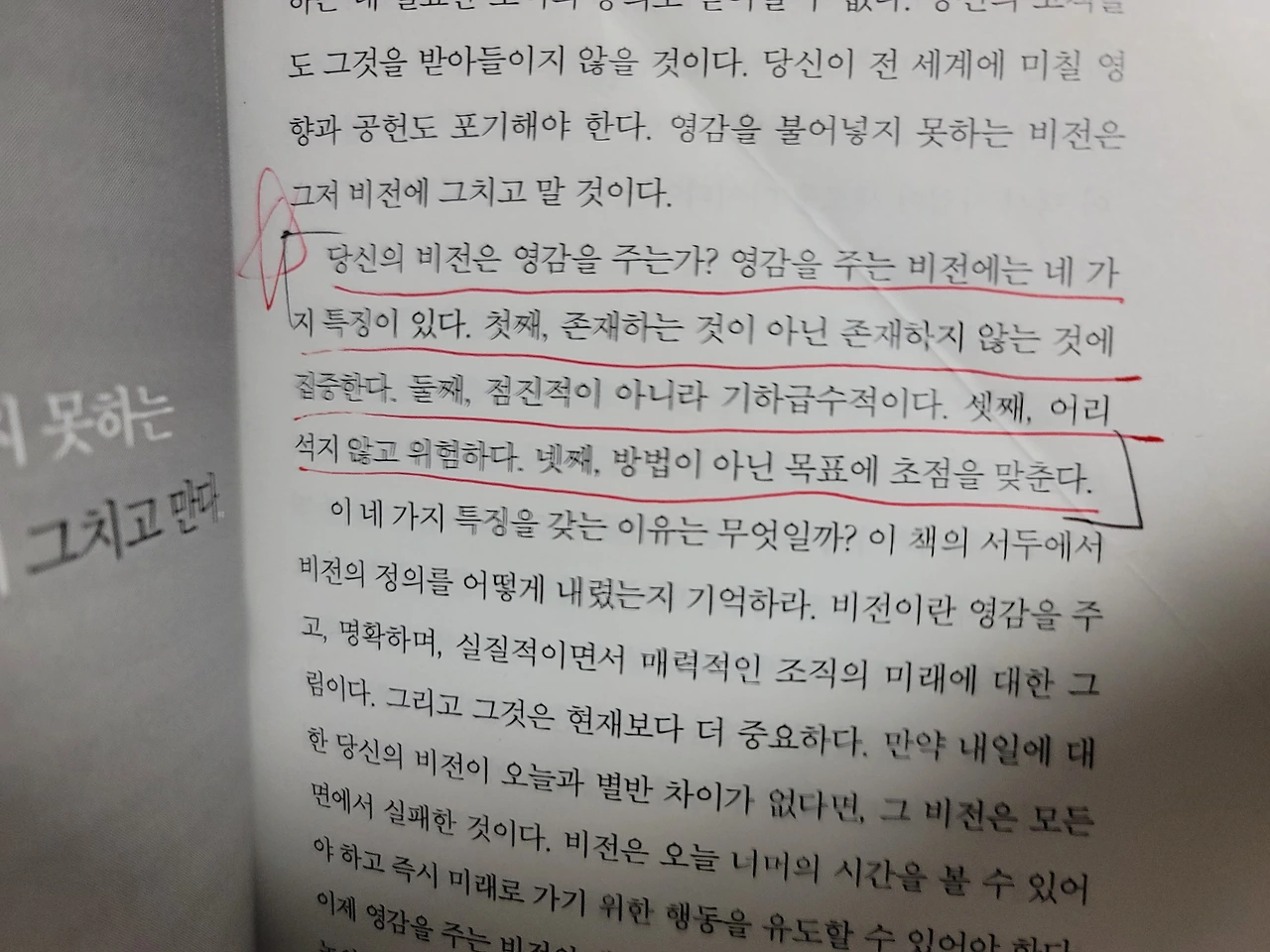 이 책은 단순히 내가 개인적으로 좋다고 하는 책이 아니라 평가가 정말 야박한 Goodreads에서 5점 만점에 4.29점의 최고의 평가를 받은 책이다. 리더십 관련 책이라고 해서 나랑은 상관없다고 생각하는 사람들도 있겠지만 절대 아니다. 우리는 우리 인생의 주인이고 리더이다. 일단 스스로를 위한 비전을 먼저 세울 수 있어야 한다. 과연 당신에게는 비전이 있는가? 이 책은 당신의 삶에 핵심 원동력을 선사할 것이다. 정말 술술 읽을 수 있는 책이니 모두가 꼭 읽어보고 자신만의 비전을 찾고 더 나아가 조직과 공동체의 비전을 확립해 대한민국은 지금은 보이지 않지만 다시어떤 희망이 기다리고 있는 그런 나라가 꼭 되었으면 좋겠다.