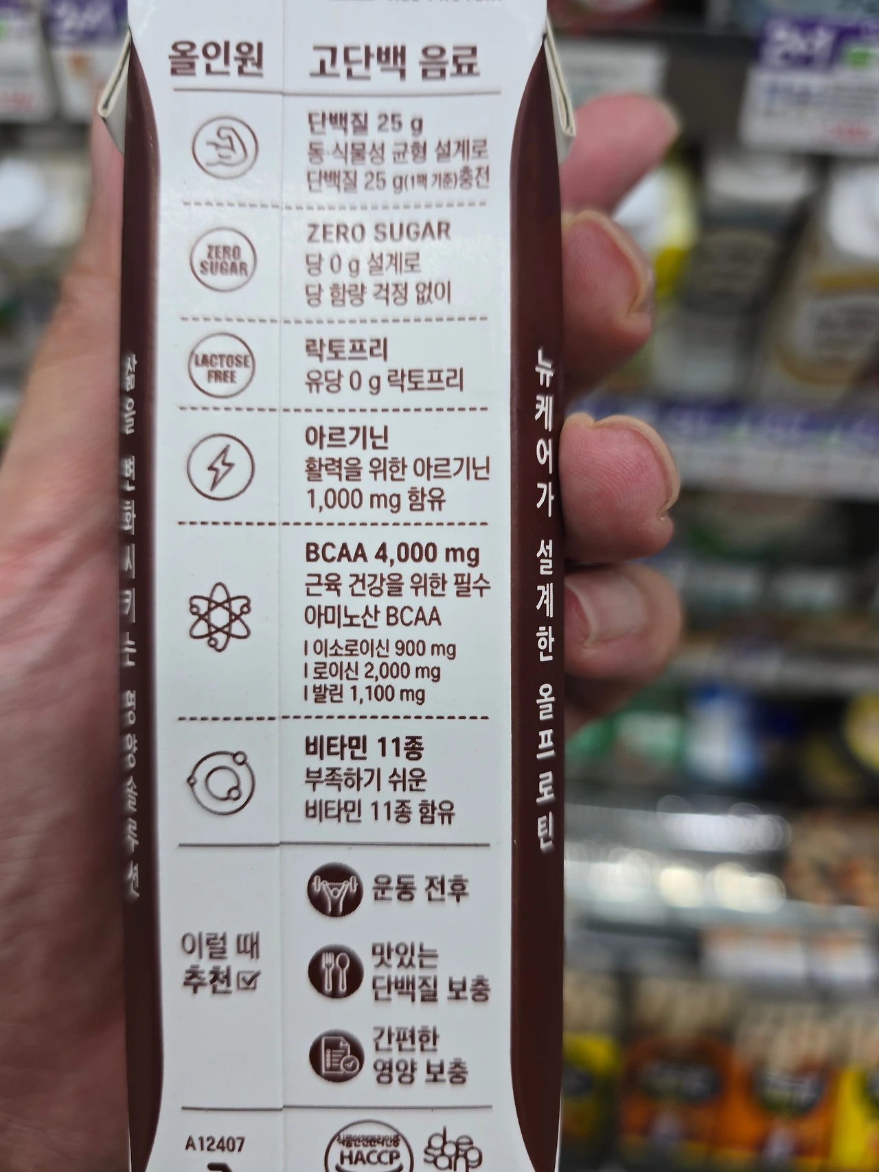 이해를 쉽게 돕기 위해서 여러분들이 편의점에서 드시는 단백질 쉐이크 제품들은 보통 20~30g의 단백질을 섭취할 수 있고, 이제는 많은 분들의 건강 상식이 올라와서 많은 상품들이 필수 아미노산 함량인 BCAA를 굉장히 크게 홍보하고 있습니다. 그래서 모든 제품을 살펴보니 보통 3000mg 그램에서 5000mg까지 흡수가 가능하다고 하고 EAA같은 경우는7380mg까지 가능하다고 언급한 제품을 보았습니다.