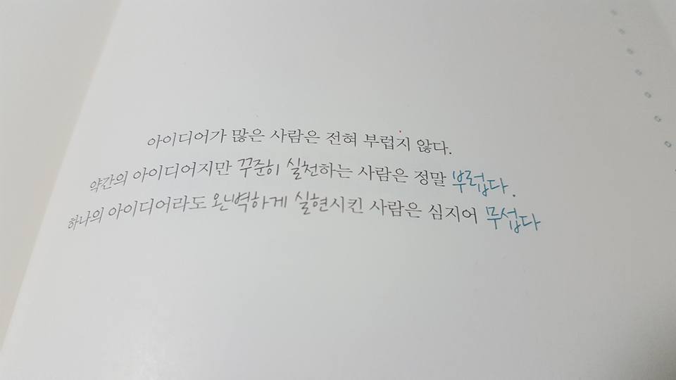 우선 모든 성공은 '메타인지'가 50%이상을 결정한다고 봐도 무방하다. (메타인지가 무엇인지 잘 모르는 분들은 <완공> 메타인지 파트만 서점에서 스윽 읽어보셔도 좋다.) 우선 <두근두근>은 원래 애초에 "자기계발" 시집으로 기획되었다. 엥? 자기계발시집? 내가 쓴 소리를 많이 하는 포지션이다보니 소위 말하는 "팩폭"에 관한 짧은 글들을 썼다. 그래서 이걸 나중에 시집처럼 엮어서 내면 좋아하는 분들이 있겠다고 생각했다. 여기까지는 단순 내 생각에 불과하다. 그리고 시장 조사를 했다. 글이 너무 짧으면 사람들이 구매 안하지 않을까하고 생각도 했지만 하상욱 작가의 '시밤'이 엄청나게 팔리는 것을 보고 또 타블로의 블로노트가 팔리는 것을 보고 "아! 임팩트가 있으면 사람들은 사는구나!"라고 조금 확신이 들었다. 그래서 계속 글을 쓰게 되었다.