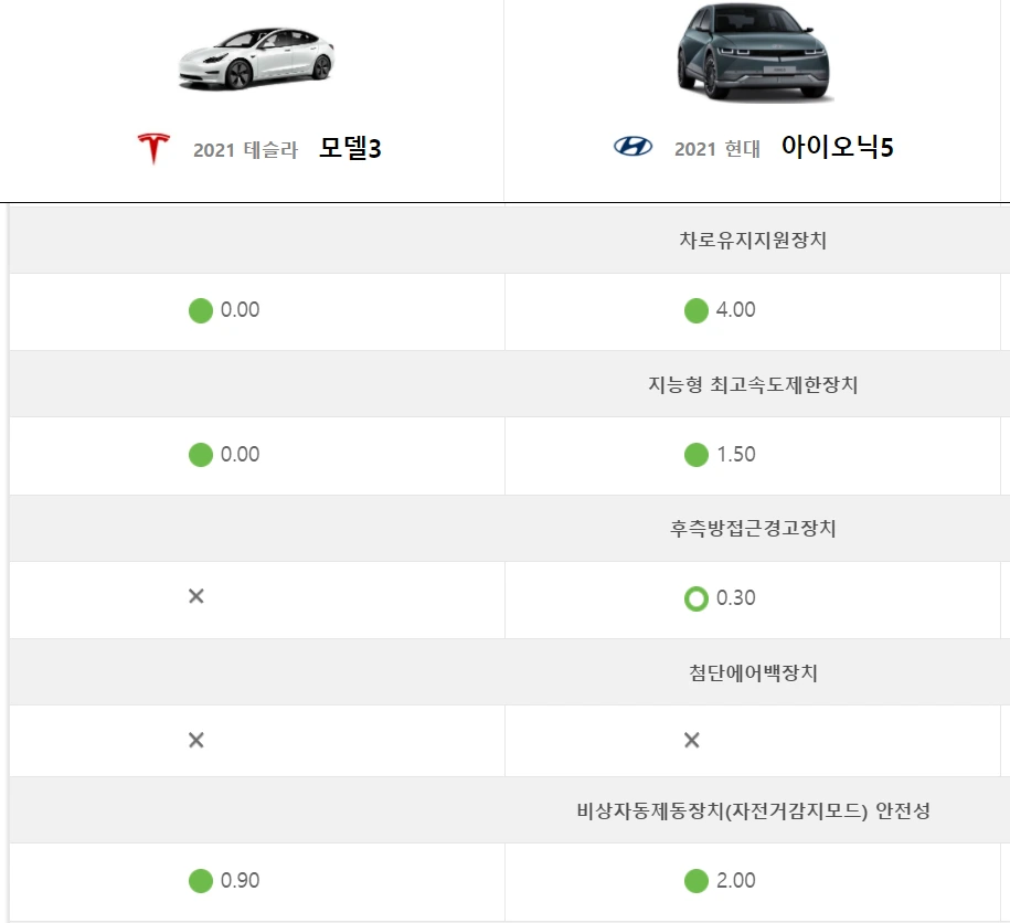 2021 KNCAP 테슬라 모델3 평가결과아직 해외의 자동차 안전성 평가에서 아이오닉5에 대한 평가는 이루어지지 않아서 직접 비교는 어렵다. 다만, 테슬라 모델3 안전성 평가에 관해서는 한국과 유사하게 보행자 안전성과 사고예방 안전성에 관한 평가기준을 갖추고, 2019년에 먼저 모델3를 평가한 유럽연합 EURO NCAP와 호주 ANCAP의 사례가 있어 함께 비교하면서 내용을 살펴보고자 한다.