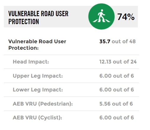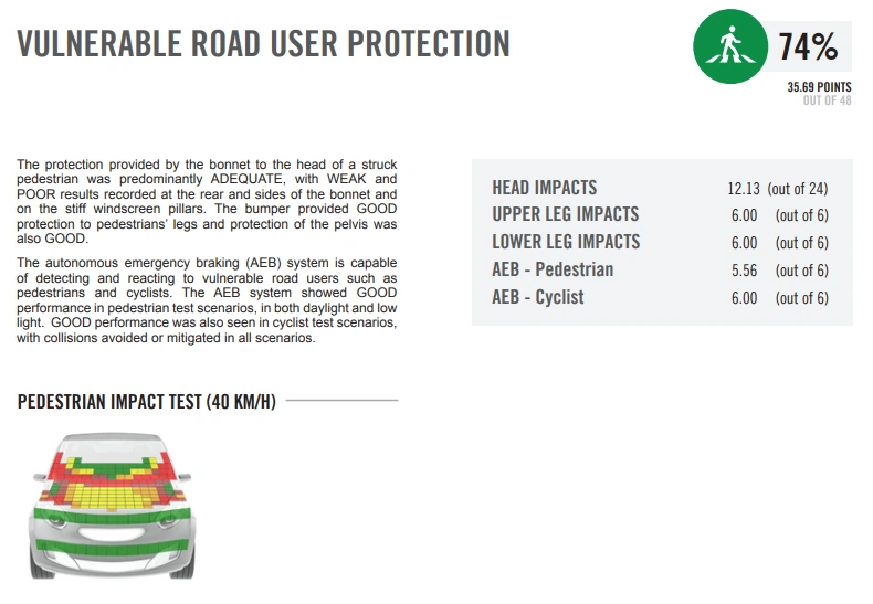 2019 Euro NCAP(유럽연합) 모델3 보행자 안전성 평가 결과