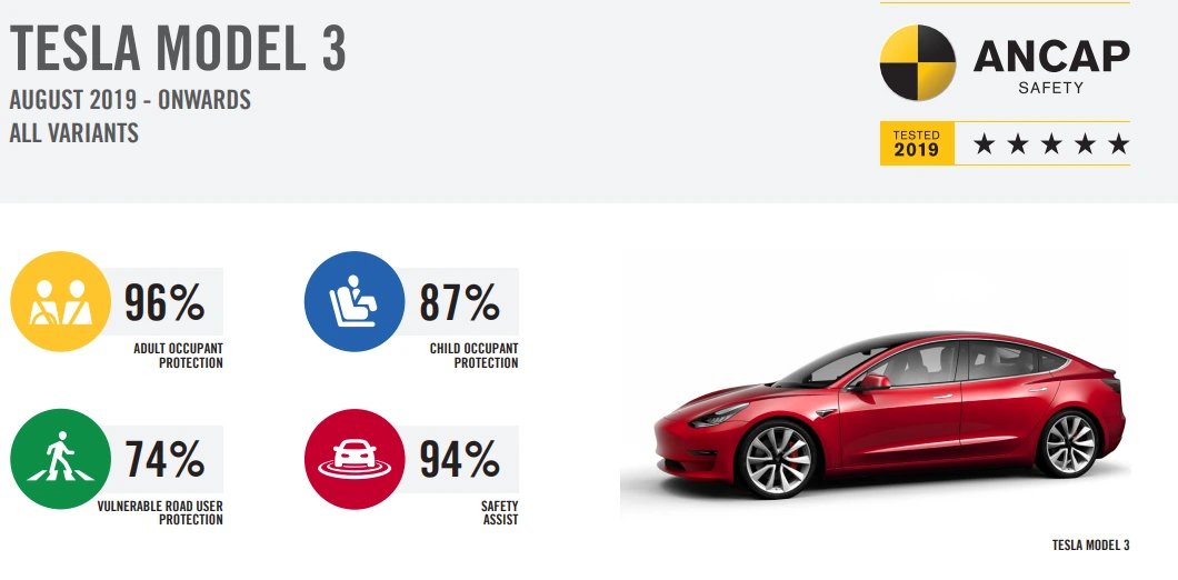 2019 호주 ANCAP 테슬라 모델 3 평가 결과