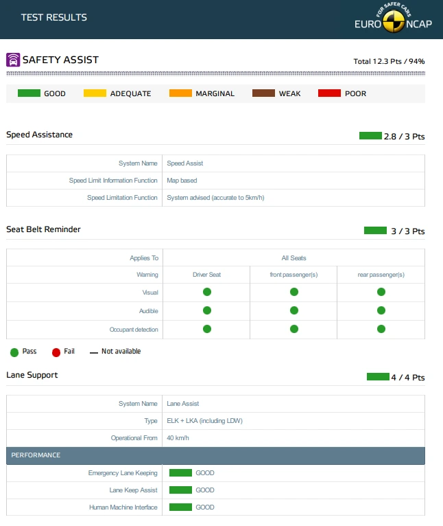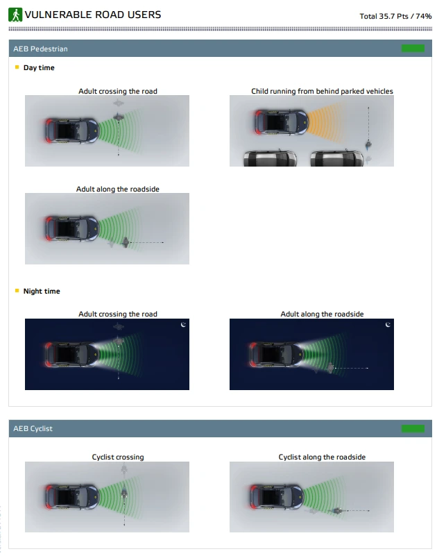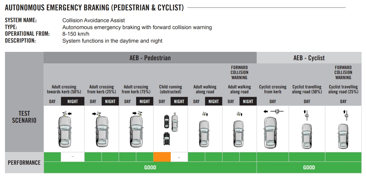 유럽과 호주의 안전성 평가에서는 차선유지와 자전거 감지 등에서 모두 좋은 평가를 받았다. (물론 곡선주행은 한국에만 있는 기준이며, 유럽과 호주는 직선기준이다.)