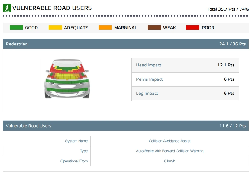 2019 ANCAP(호주) 모델3 보행자 안전성 평가 결과