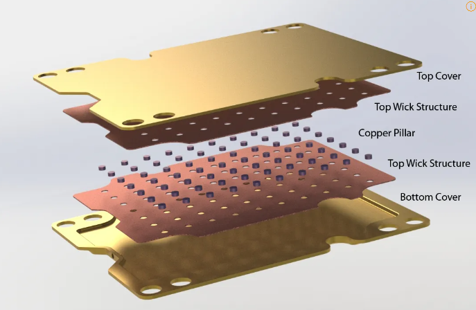 베이퍼 챔버는 액체가 증발하면서 열을 흡수하고, 증기가 다시 응축되면서 열을 방출하는 과정을 반복하여 효과적인 냉각을 제공합니다. 또한, 팬이나 기타 소음이 발생할 수 있는 부품을 사용하지 않아 소음 없이 열 관리가 가능합니다. 이러한 기능을 통해 고성능 전자 기기의 열 관리 문제를 효과적으로 해결하고, 기기의 성능을 최적화하며 장기적인 안정성을 보장하는 데 중요한 역할을 합니다.