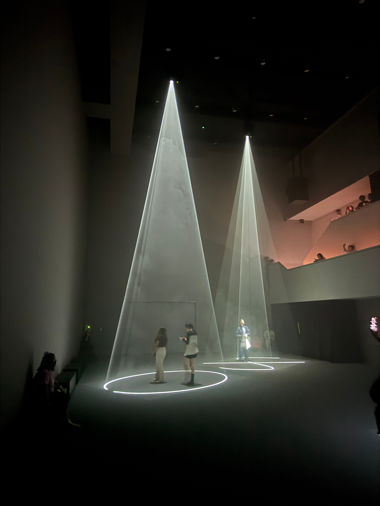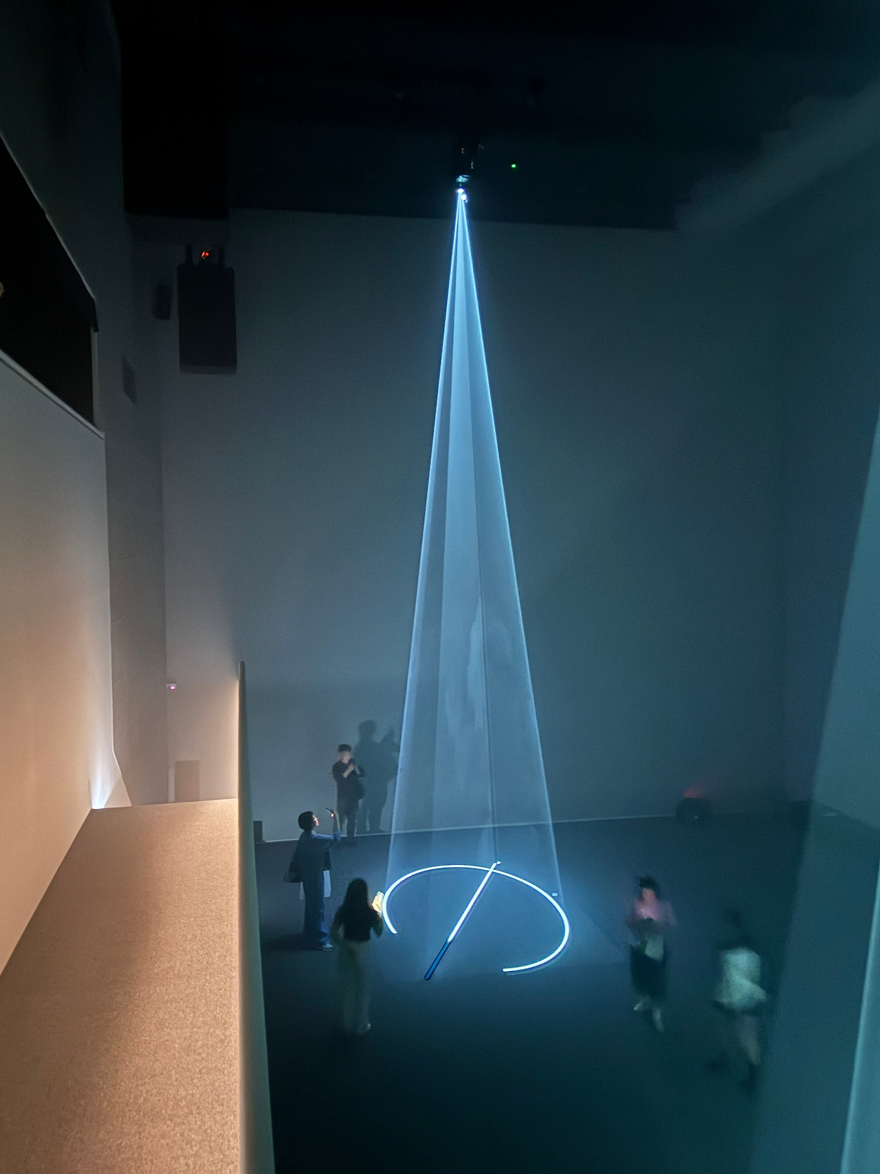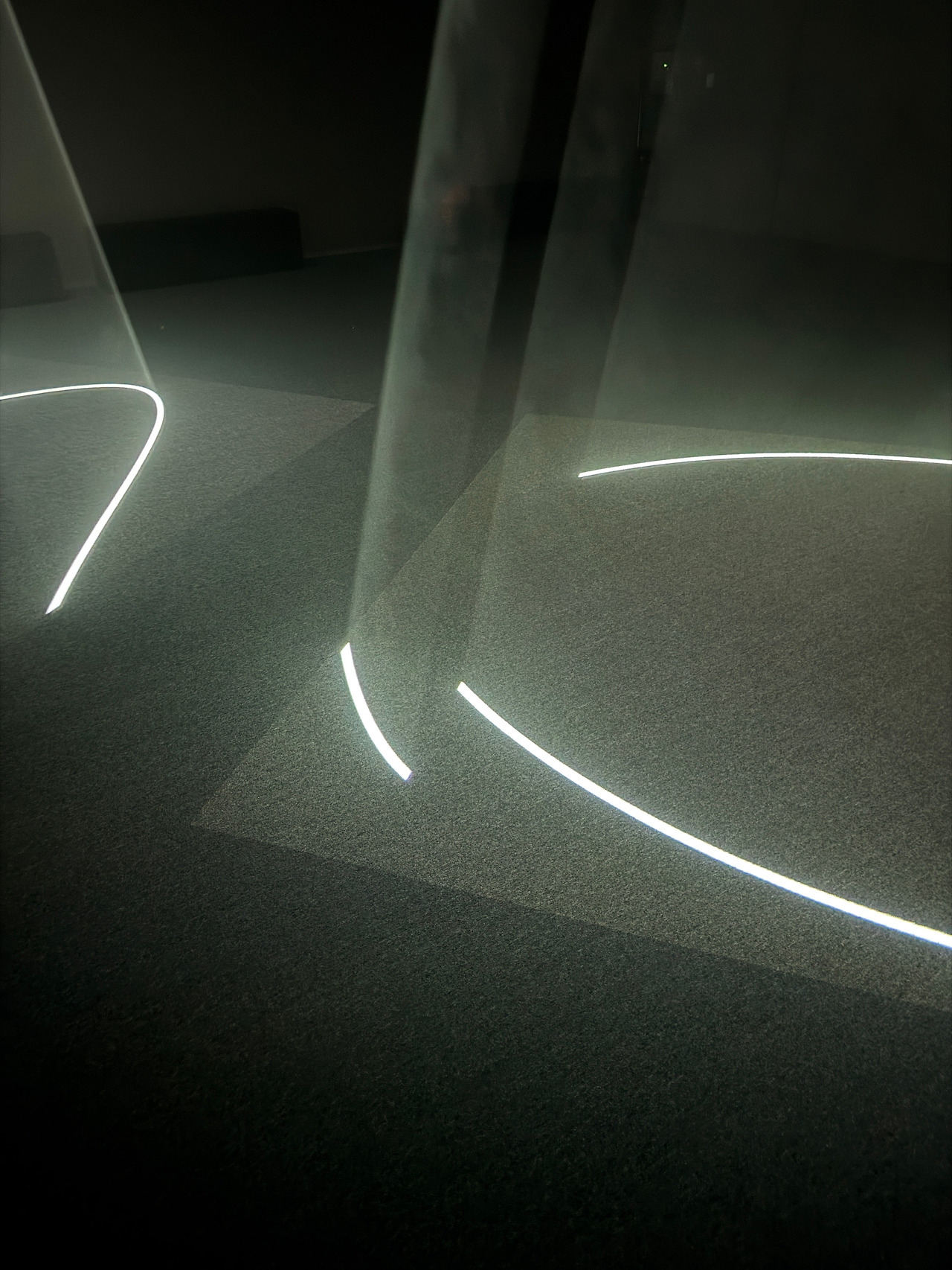 어둠 속에서 일정한 간격으로 옅게 뿌려지는 안개에 투사된 천장에서 쏟아지는 빛은 손으로 만질 수는 없다. 하지만 전시를 관람하는 관람객들은 이를 마치 단단한 벽처럼 생각하며 안과 밖의 경계가 있는 것처럼 행동한다. 그러다 이 빛에 익숙해지면 조심스레 빛 자체를 만져보려 손을 뻗어보기도 한다. 나 역시도 이런 과정을 겪으면서 리차드 세라의 작업을 빛으로 재구성하면 이런 느낌일지 상상해보기도 했다.