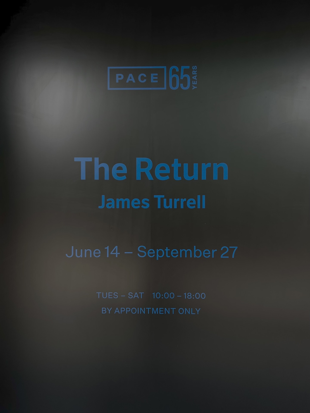 기존 페이스 갤러리의 공간을 생각하며, 터렐이 과연 어떤 식으로 본인의 작업을 설치하였을지 궁금했었다. 이번 전시는 몰입형 전시 5개(카페 포함)를 각 층별로 골고루 배치하였는데, 관람객들이 원래 인지하고 있던 페이스 갤러리의 공간이라고 생각하지 못할 정도로 작품을 관람하기에 최적화하여 구성하였다고 생각한다. 1,2층에 배치된 'Glassworks' 작업들은 제작된 벤치에 앉아 서서히 변화하는 빛을 바라보며 고요한 명상의 시간으로 빠져들게 한다. 그리고 3층의 'Wedgework' 작업은 약 25분간 10명의 관람객들만 들어갈 수 있도록 통제되는데, 관람객은 어두웠던 공간이 빛에 의해 완전히 재구성되는 경험을 할 수 있다.