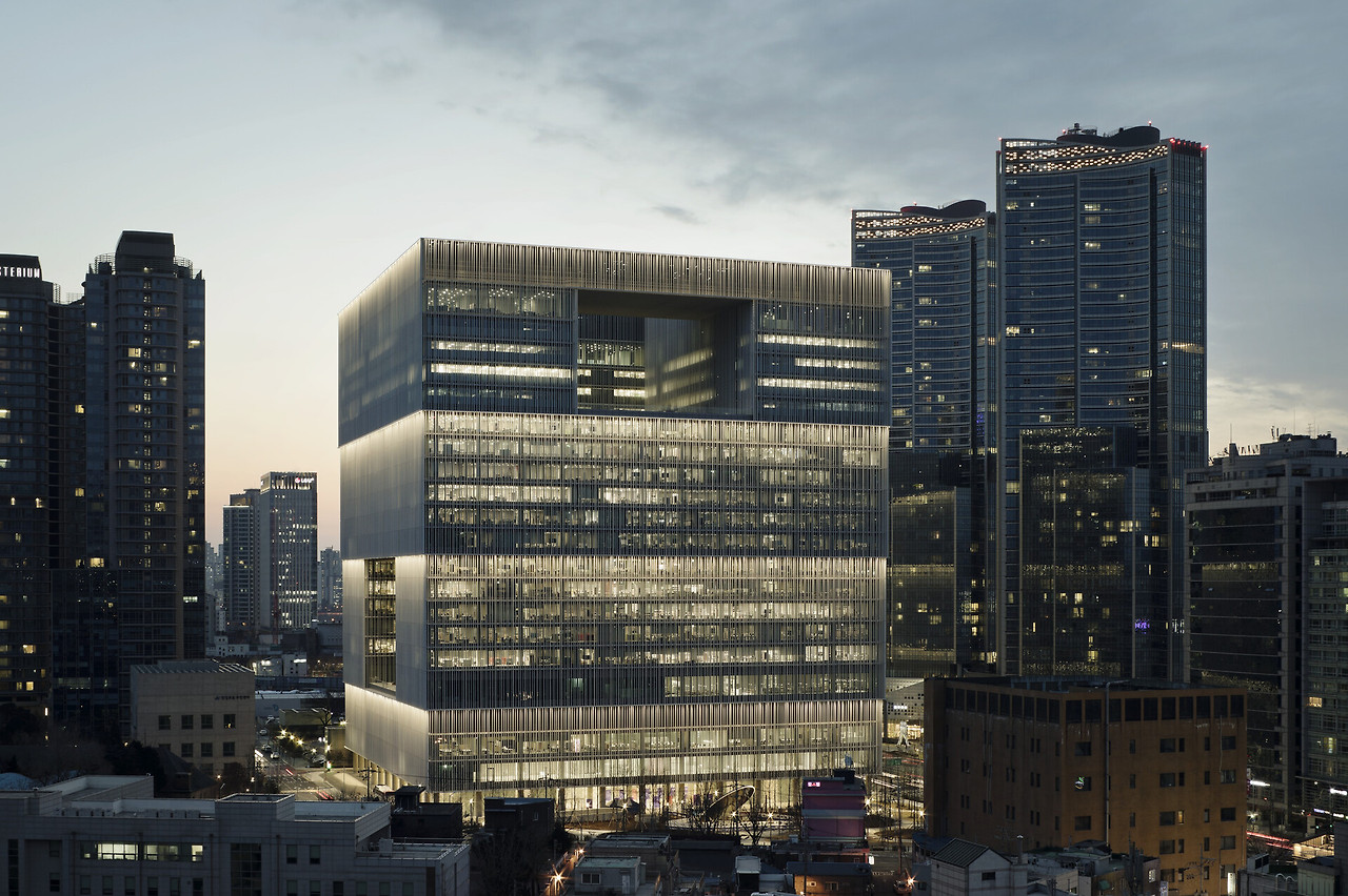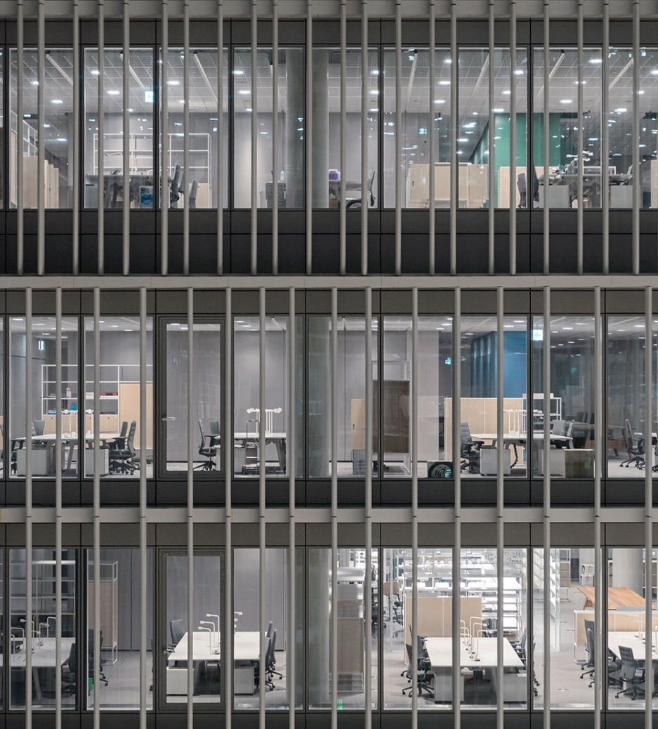 재즈를 좋아하는 나는 평소 스탠리 휘트니의 작업을 좋아했다. 마치 재즈 음악들이 메인 레퍼토리 안에서 각 연주자들의 즉흥 솔로들로 다양한 변주를 이루어내듯, 그의 작업은 일정한 규칙이 반복되는 구조적인 틀(그리드) 안에 서로 다른 색채들이 각자 자신을 뽐내면서도 전체적으로 조화로운 이미지를 만들어낸다. 이는 건축물의 입면과 평면에서도 흔하게 발견할 수 있는 구성방식인데, 그의 작품을 보며 자주 떠오른 건축물이 바로 David Chipperfield Architects(DCA)에서 설계한 아모레퍼시픽 용산 사옥이었다.