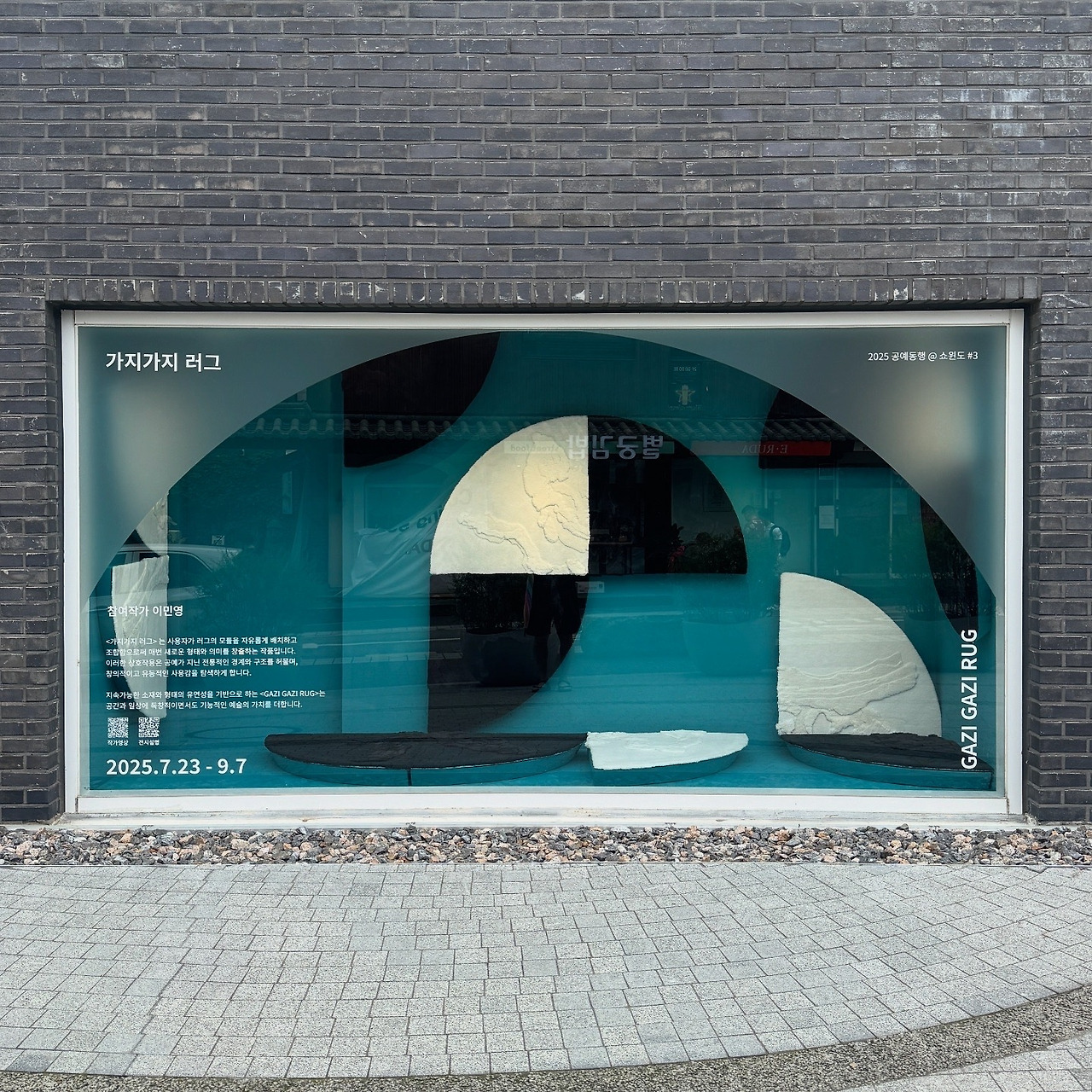 39세 이하 공예작가들을 대상으로 작품을 공모, 선정하는 2025년 '시민소통 공예프로그램' 선정작인 이민영 작가의 <가지가지 러그>가 전시 3동 쇼윈도에 설치되었다. 코펜하겐의 '3daysofdesign'에도 출품되어 호평을 이끌어 낸 이 작품은, 지속가능한 소재를 활용하였고 사용자가 자유롭게 배치하며 새로운 형태를 도출해 낼 수 있다. 사용자가 일상에서 자유롭고 편안하게 사용할 때 비로소 그 의미가 완성되는 것이 공예라고 생각하는데, 멋과 사용성을 모두 잡은 독창적인 작품이었다.