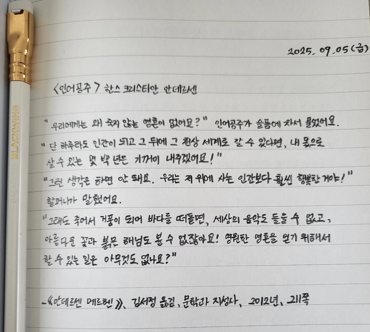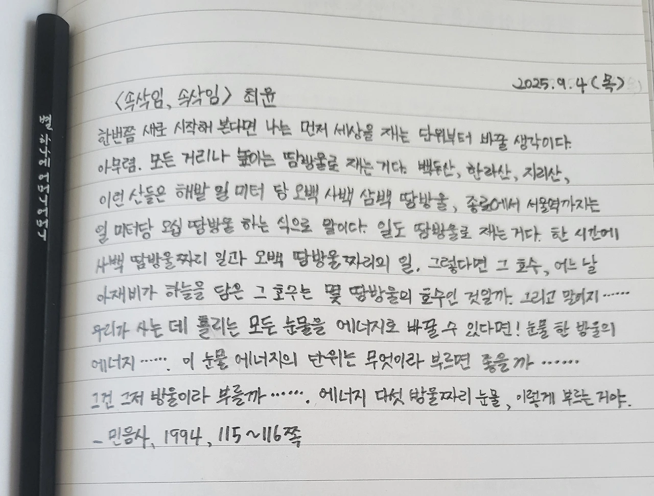 A. 저는 완성의 맛을 음미하는 것 같아요. 인생에 완벽한 것은 없다고 하지만 단어와 문장은 내 나름대로 완벽하게 맺음을 할 수 있다고 믿는 것 같아요. 사실 시도하고도 끝맺음을 못하는 경험이 수도 없이 많답니다. 하지만 필사를 하거나 생각을 담는 글을 쓸 때면 반드시 맺음을 해야 직성이 풀리는 것 같아요. 그래서 불확실성이 팽배한 일상에서 완성이라는 의미를 연필이 붙여주는 것 같아요.
