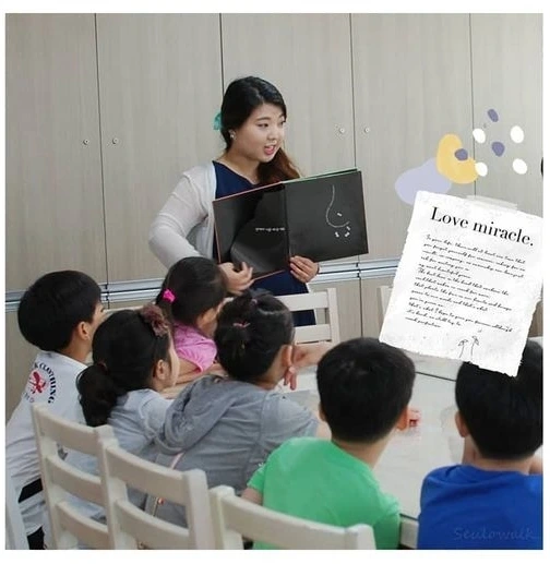 아이들에게 그림책을 읽어주는 '모리'를 본 적은 없지만 사진을 볼 때면 프로페셔널함에 다시 한번 반하곤 한답니다. 일하고 있는 사랑하는 사람의 모습은 더욱 푹 빠지게 만드는 것 같습니다. 책을 가까이하는 사람이 주변에 많이 없었기에 '사서 선생님 모리'는 뭔가 특별하게 다가왔습니다. 책을 선물하고 책을 읽어주고 책을 추천해주고 마음의 양식을 쌓으면서 책 읽는 재미를 일깨워주었습니다. 마음 가장 가까이에 있는 책 선생님의 이미지가 제 마음을 너무 평안하게 해 줍니다.