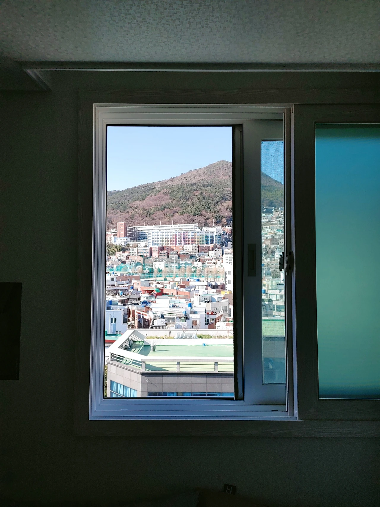 지난해 크리스마스에 첫 만남이 성사되긴 했지만 그 만남은 또 한 번의 연이 되어 서로의 손을 잡을 수 있는 사이가 되었습니다. 2021년 2월, 우리는 정식으로 교제를 하게 되었습니다. 위 사진은 '모리'의 집에서 찍은 창문 밖 사진입니다. 부산 사람이라면 익숙하시겠지만 광주 사람 '키노'는 마치 한 폭의 액자 속 그림을 감상하듯 처음 한동안 멍하니 바라보고만 있었던 것 같습니다. 광주에선 저런 풍경을 볼 수 없었으니까요. 오밀조밀 모여있는 집들의 풍경은 다른 나라에 온 것 같은 특유의 신선함이 가득 넘쳤습니다.