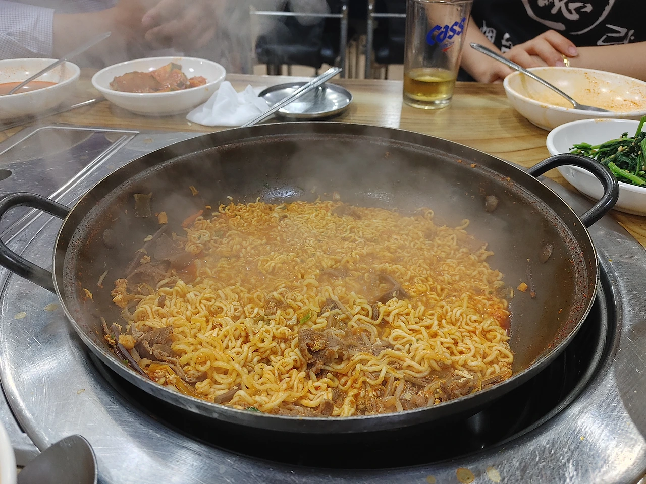 평범하고 간단한 레시피지만 완성된 요리를 상상하니 군침이 마구 샘솟는다. 약간의 게으름을 지그시 밟고 일어나서 부엌으로 향한다. 대략 7분 뒤에 한 끼를 책임질 뜨끈뜨끈한 양은냄비가 밥상 위로 올라온다. 뚜껑을 열면 김이 모락모락 올라오며 천정을 달구는 나의 소울푸드는 가성비 좋은 라면 한두봉 지다(하나로는 성에 안 찰 때가 많다). 술 한잔 거하게 하고 필름이 끊기기 전에 늘 함께 위장을 채워왔던 머리 국밥도 떠올랐지만 라면을 이기지 못하고 2순위에 머물렀다. 물론 평상시에도 '툭'하면 국밥을 찾았지만 라면은 'ㅌ'하면 찾았으니까 가장 가까울 수밖에 없다.순간 악동뮤지션의 노래 '라면인 건가'가 떠오른다.