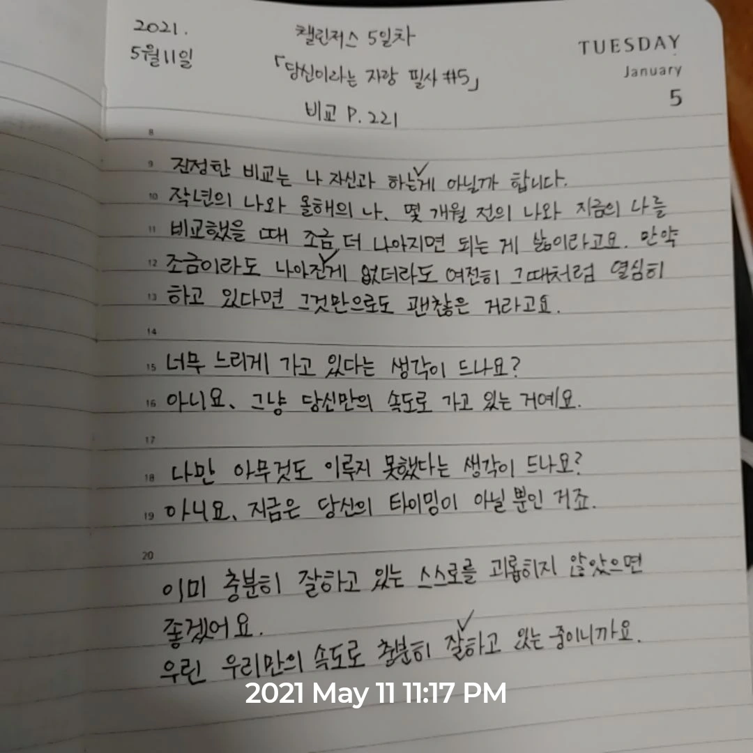 내 삶이 조금 더 나아지고 있다는 생각이 드는 것을 확인할 때마다 나는 무엇이든 기록하고 있는 것 같다. 꼭 스스로에게 메시지를 남기는 것처럼...