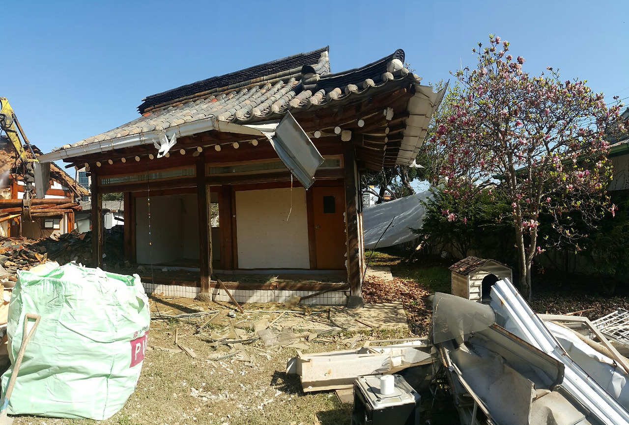 원주 정대교 선생 가옥원주시 단구동 끝자락, 얼추 수천 평에 달하는 대저택, 한때 나의 와인 선생인 정대교씨가 선대로부터 물려받은 원주 유수의 반듯한 조선집이 2022.4.15 헐리고 있다. 강원도에서 둘째라면 서운할 만큼 재력가였던 선생의 집안도, 선생의 건강과 함께 급격하게 쇠락을 맞는다. 더 이상 관리가 어려워 건축업자에게 매도를 했다고 전해진다지만, 선생에게 돈은 그냥 종이호랑이 일뿐, 그에게 작은 일상 하나도 회복해 주지 못했다. 그렇게 천년만년 갈 것 같은 가문의 위업도, 어느 한순간 사라지고 만다. 선생은 건강을 잃고, 이 집의 허망한 보존보다도 먼저 찾아왔을, 세상의 '부질없음'에 항복하고 있었을 것이다. 포클레인의 강력한 펀치를 맞은, 백수십 년을 지탱해온 기둥과 기와들이 와르르 무너진다. 이를 곁에서 지켜보던 친구 '심재근'이 안타까움을 전해왔다. 그럼에도 난 현장에 달려갈, 그럴 용기가 없었다. 먼발치서 부서져 내리는 파편들을 상상할 뿐, 도저히 가질 수 없었기에 더더욱 애증이 교차했던 그런 그 집이, 흔적 없이 사라졌다. 나의 부러움과 함께.