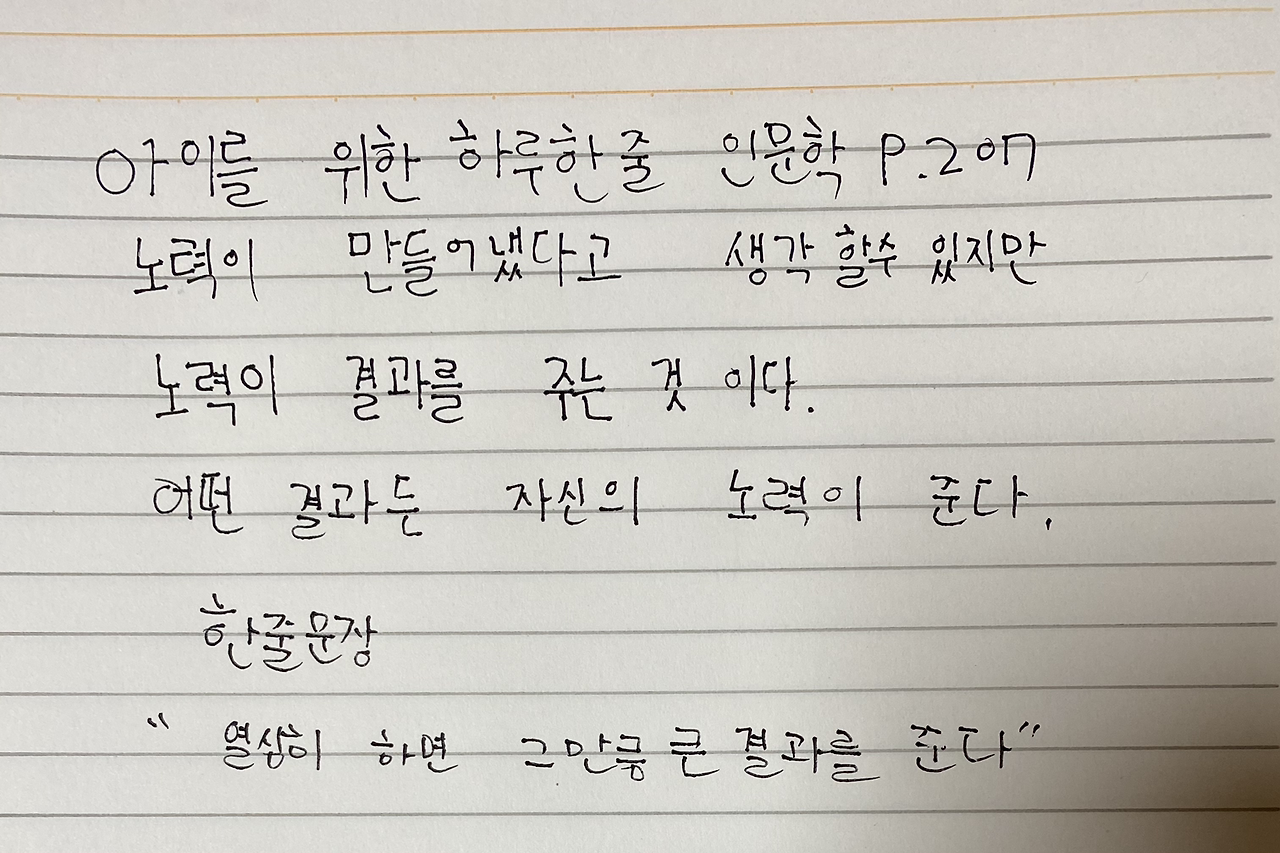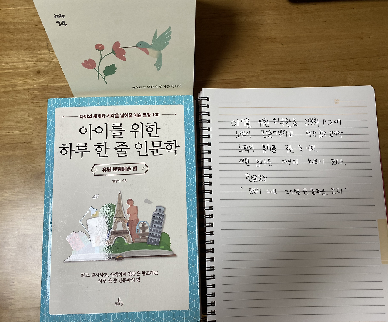 학교가 끝나고 집으로 돌아와 필사를 해 두었고 누나와 시간이 달라 인문학 달력 낭송은 늦은 밤이 되면 할 수 있다.