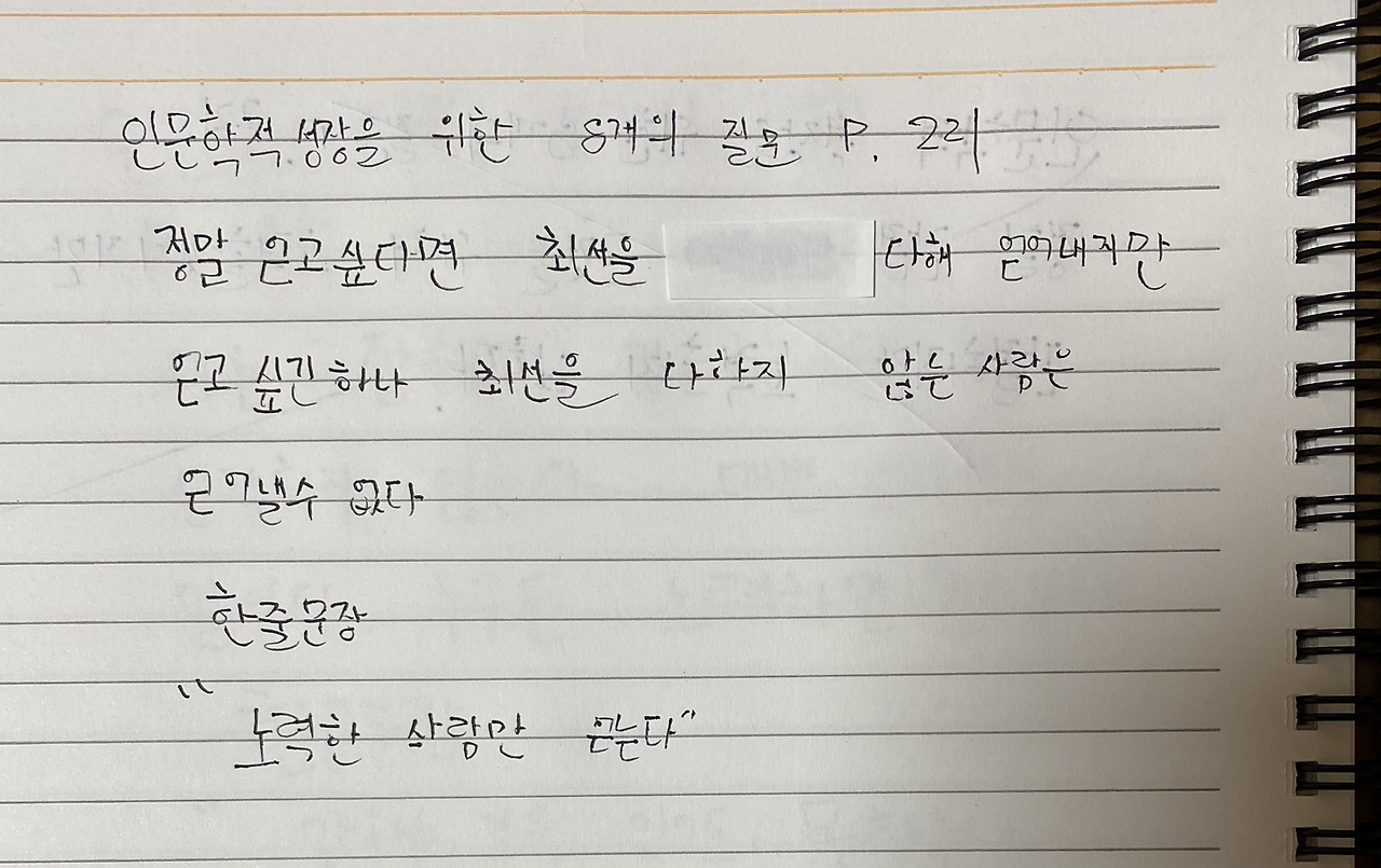인문학적 성장을 위한 8개의 질문 221p를 읽고