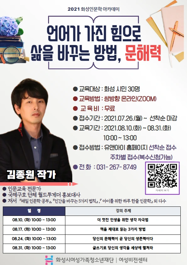 지성 김종원 작가의 8월, 9월 줌 인문학 강연 안내