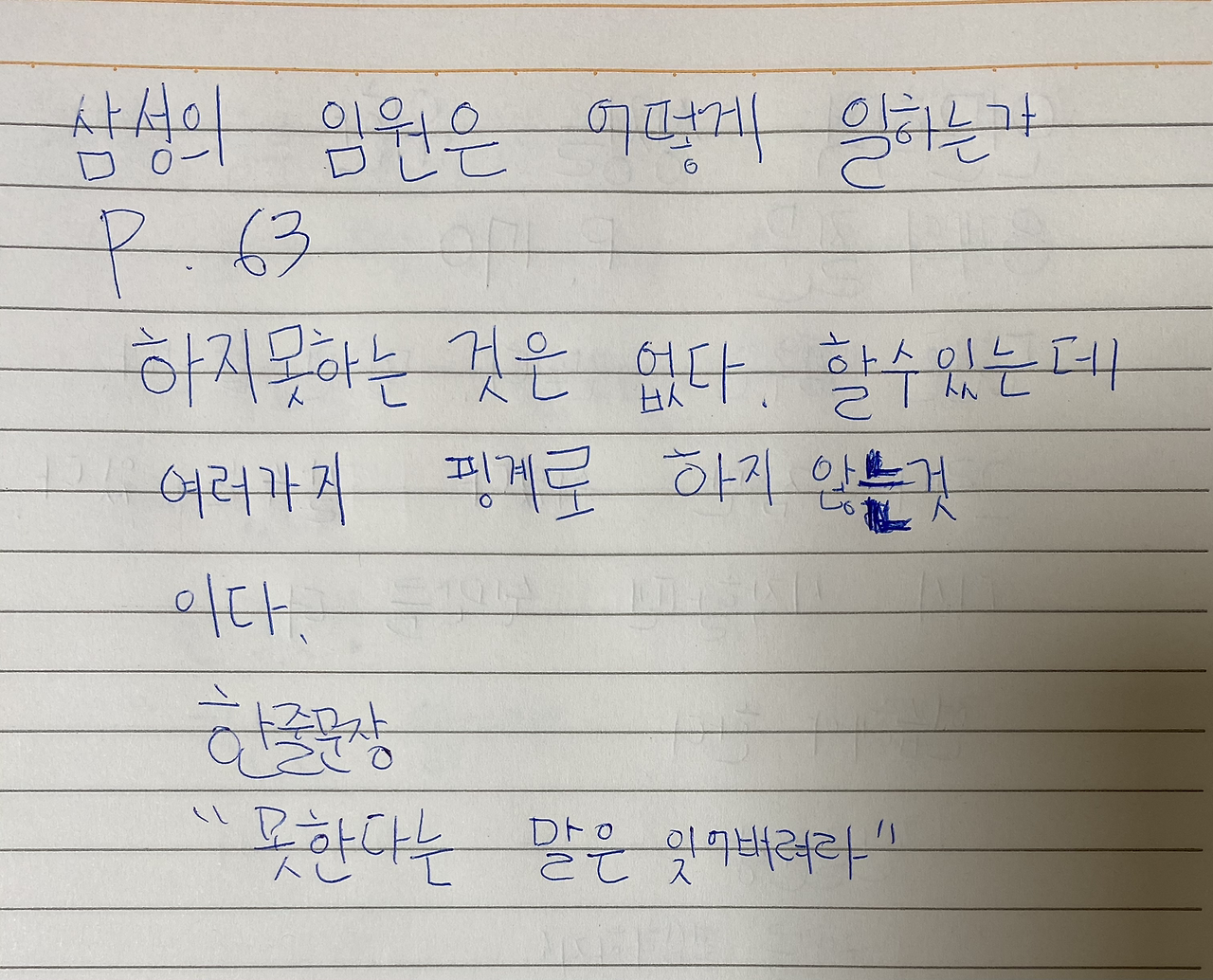 김종원 저 삼성의 임원은 어떻게 일하는가 63P를 읽고