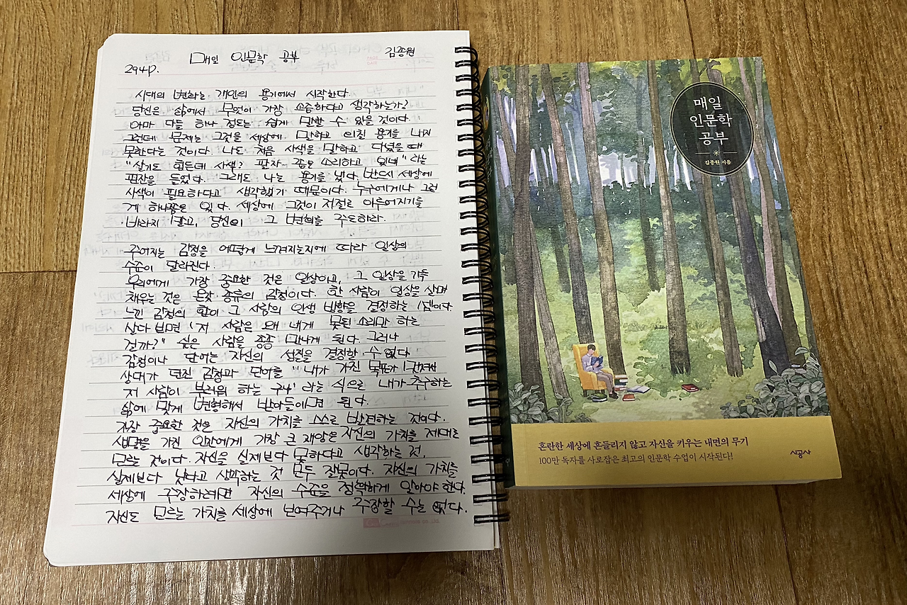 둘째 중학생 아이는 집에서 남은 방학을 보내며 이렇게 매일 지성과의 대화를 실천하고 학원과 늦은 밤 시간 일반부 형들과 수업을 받고 열 시가 다되어 돌아오는 태권도 수련까지를 모두 자신이 이끄는 대로 온전한 시간을 능동적으로 움직이며 만들 수 있다. 이처럼 매일 ‘하루 10분 인문학 수업’을 통해 아이들을 충분히 자기가 주도하는 삶을 살안갈 수 있다는 게 부모가 아이에게 바라는 가장 큰 희망이며 소망일 것이다.
